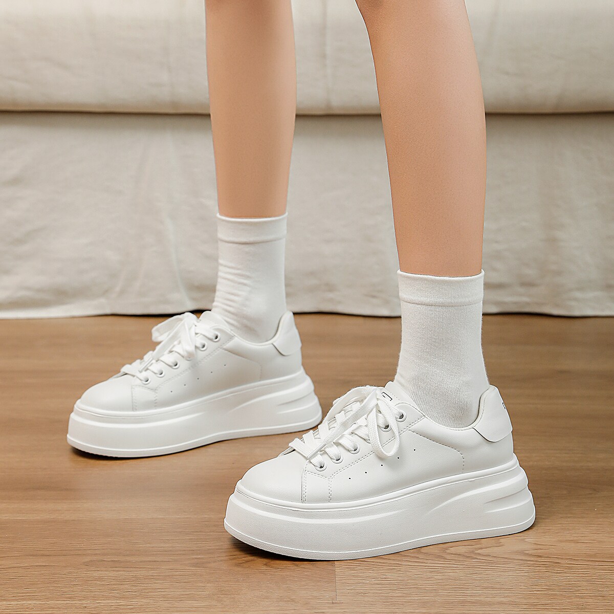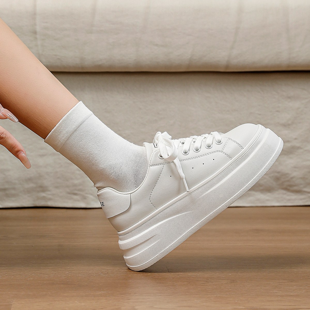 百搭系带轻便白色板鞋 Dfuse休闲风高颜值小白鞋 女厚底增高时尚 女