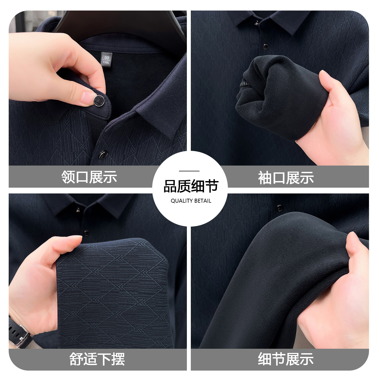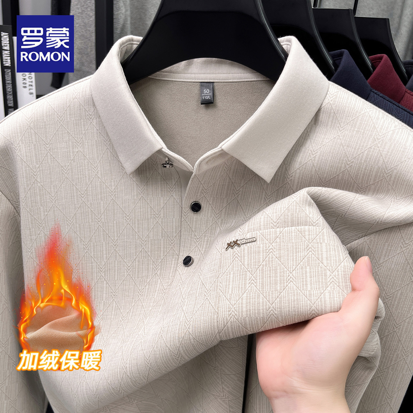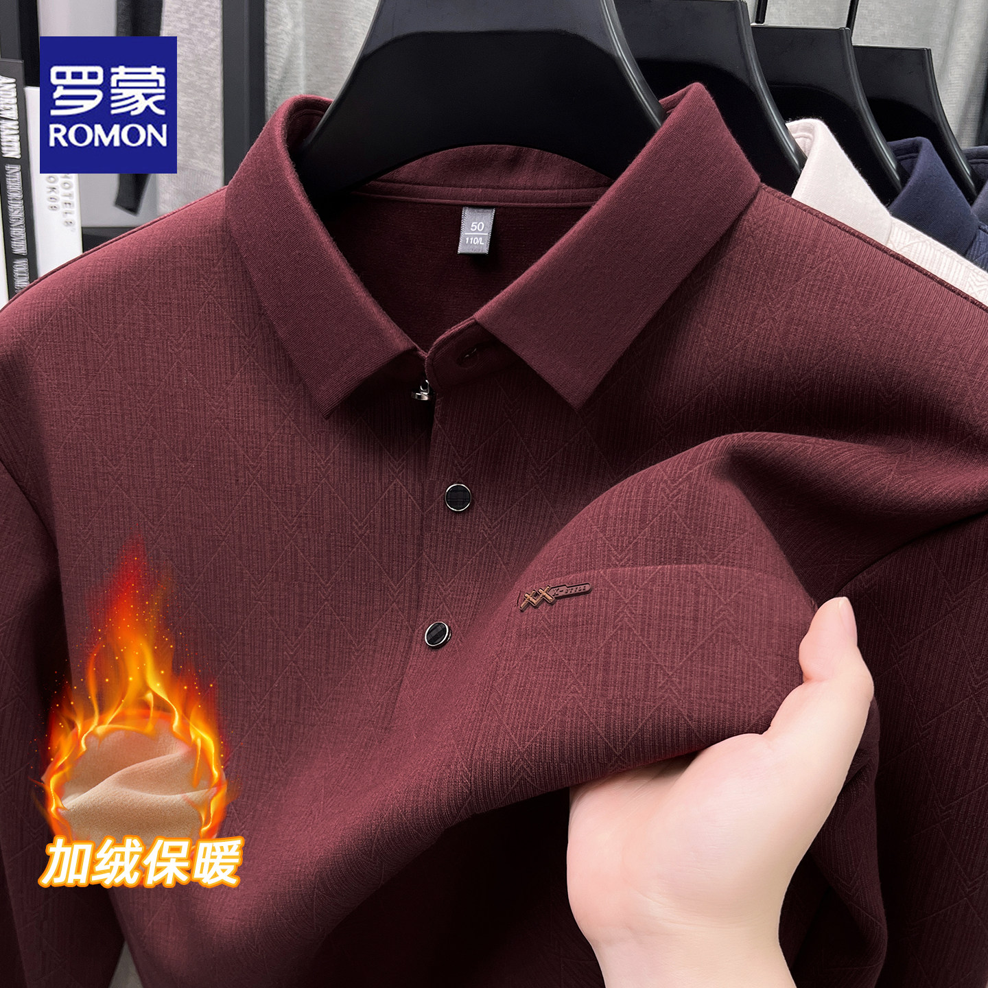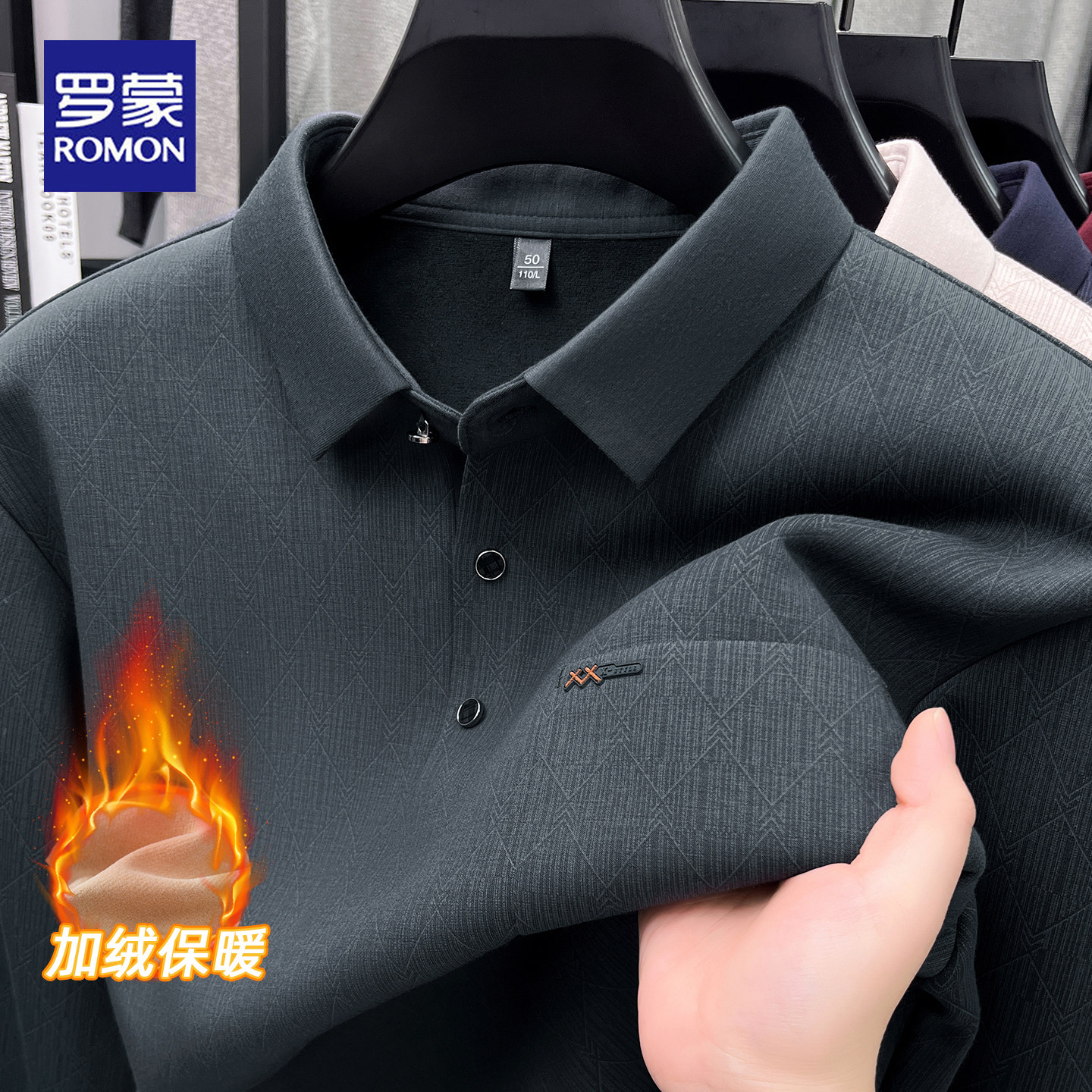 打底衫 罗蒙2025冬季 翻领POLO衫 男商务休闲加绒保暖爸爸装 新款 长袖