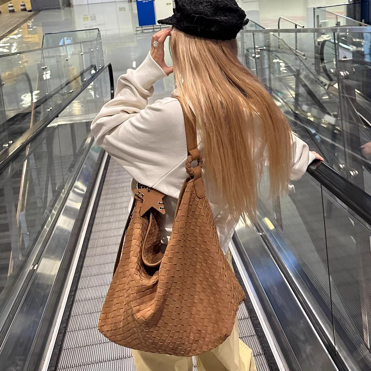 孙千同款 麂皮编织包2025新款 大容量秋冬高级感托特包单肩斜挎包