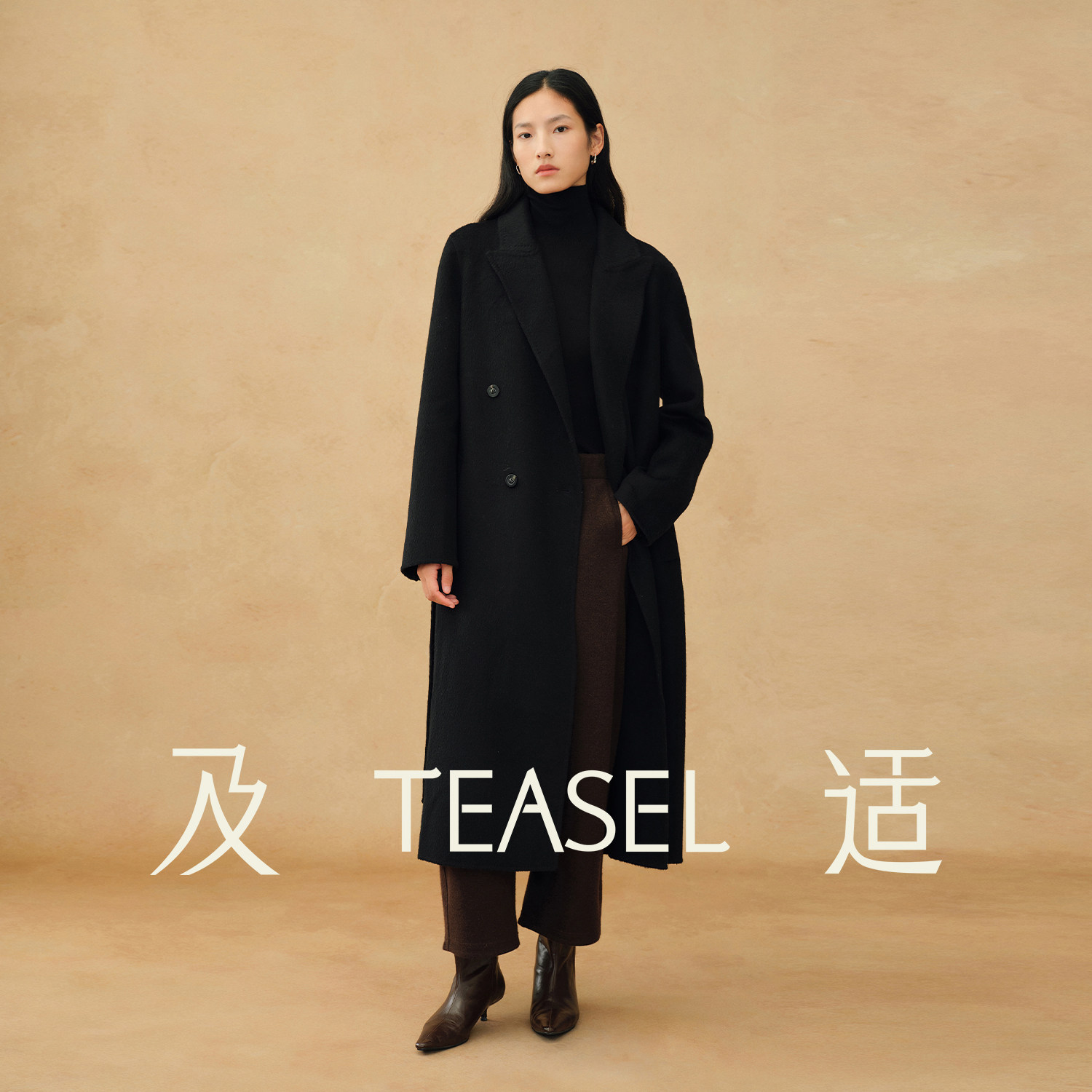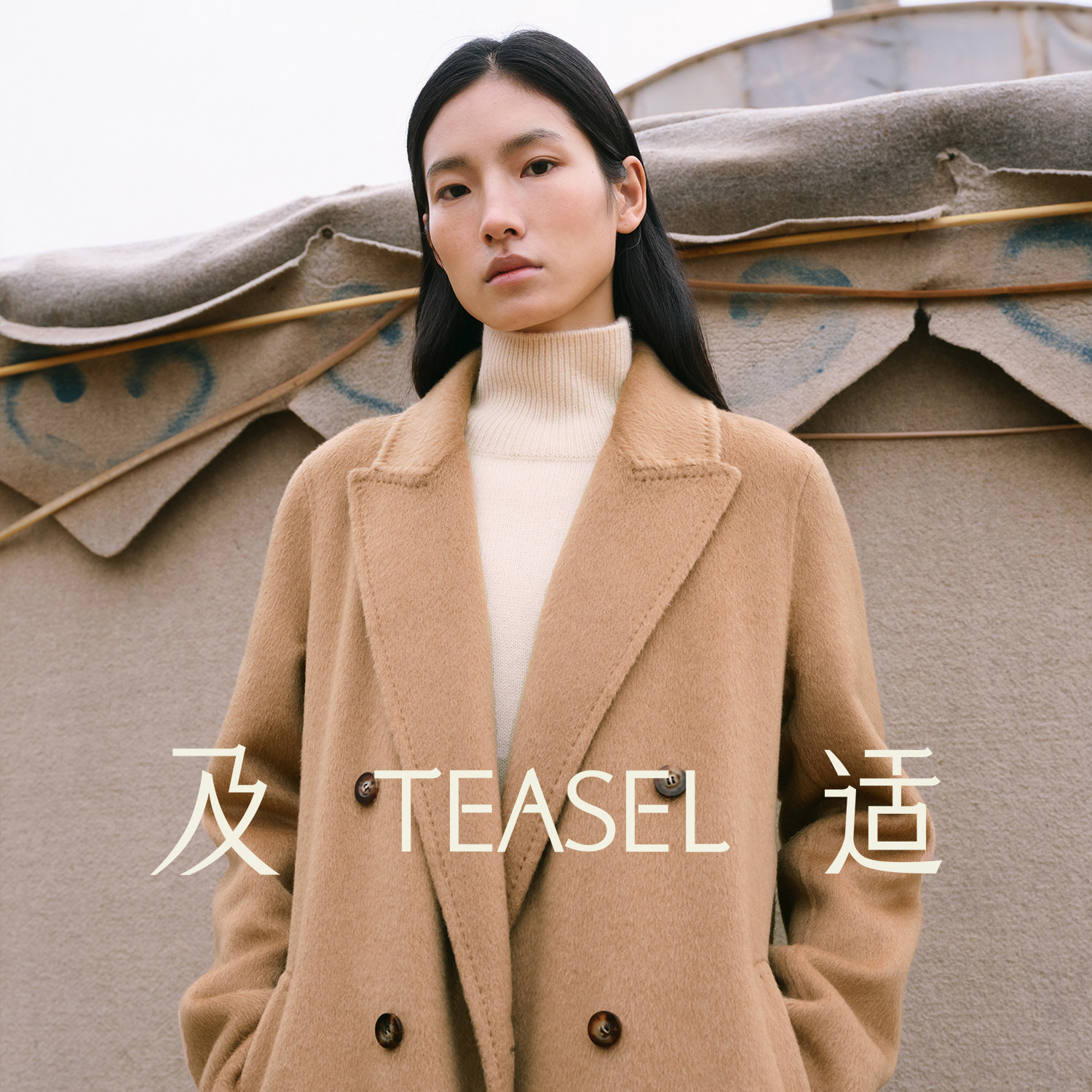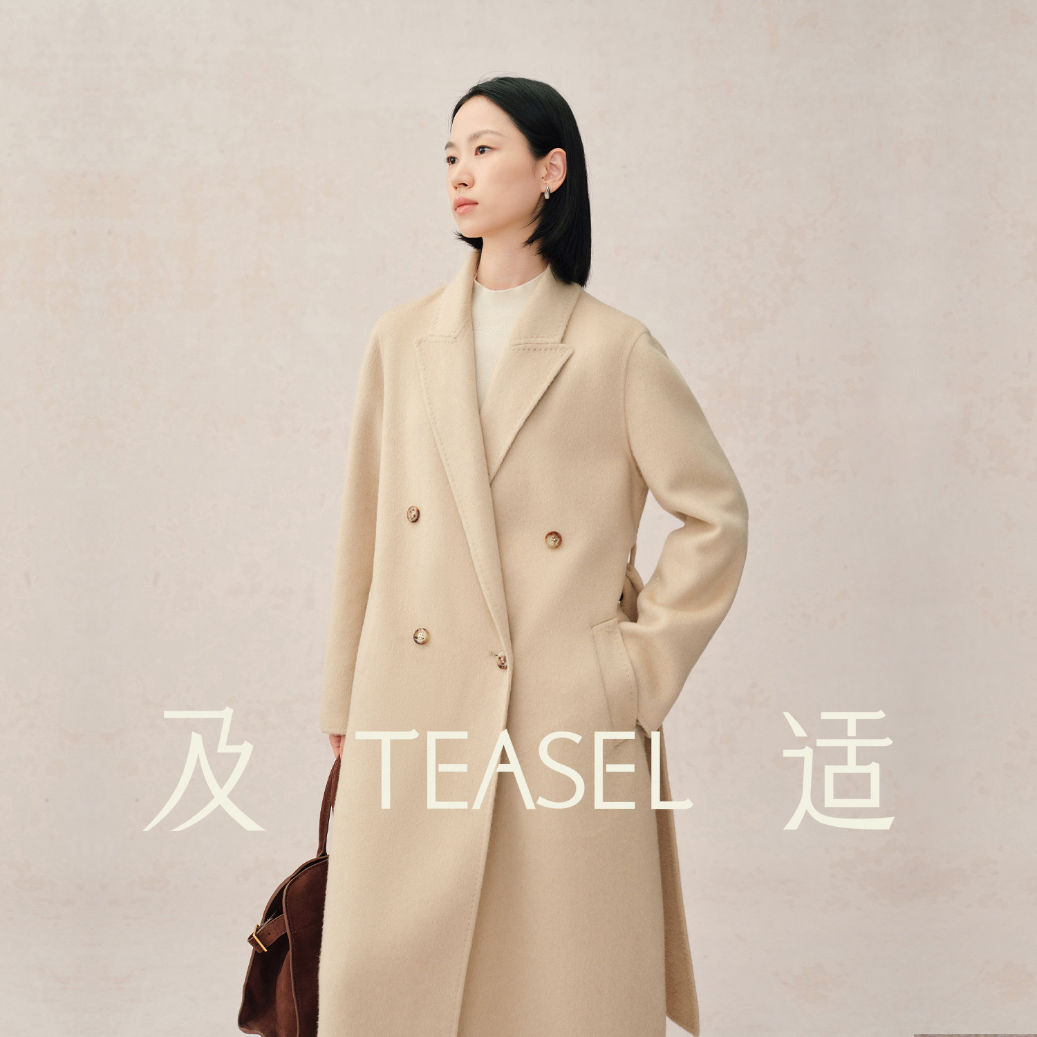 TEASEL「阿拉善绒章」100幼骆驼绒通勤气质戗驳领正肩双面呢大衣