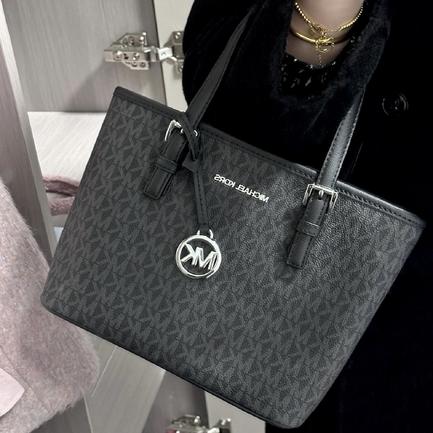 正品 Set菜篮子包手提斜挎包真皮老花送女友 Jet 代购 MK女包经典