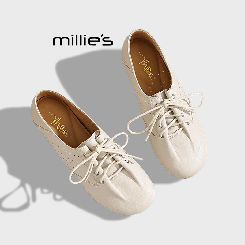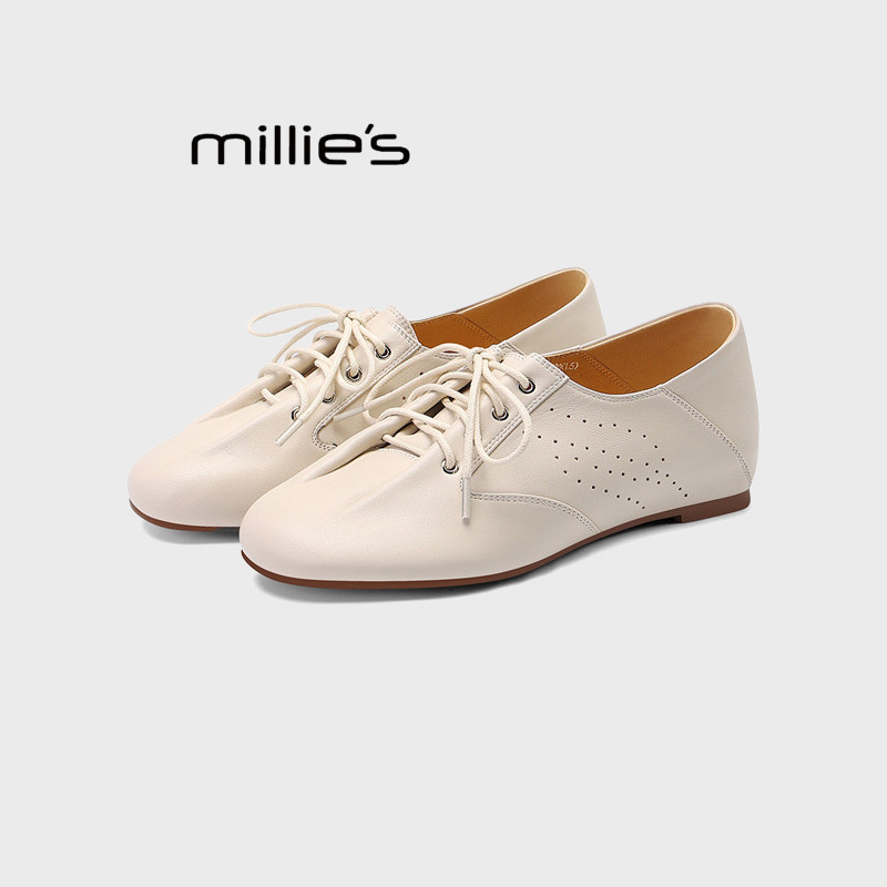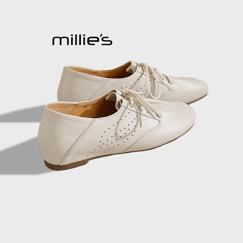 MILLIE 女米白色软底轻便百搭防水鞋 妙丽复古风系带平底德训鞋