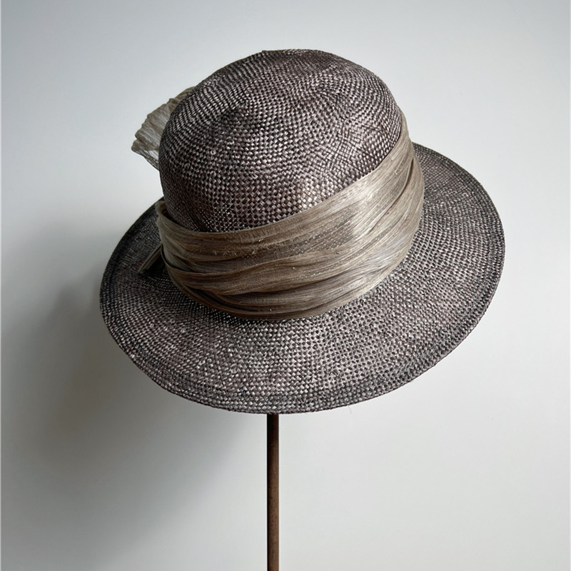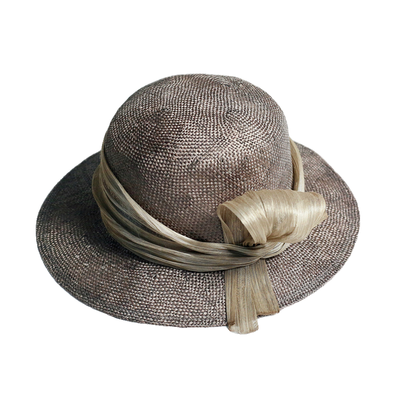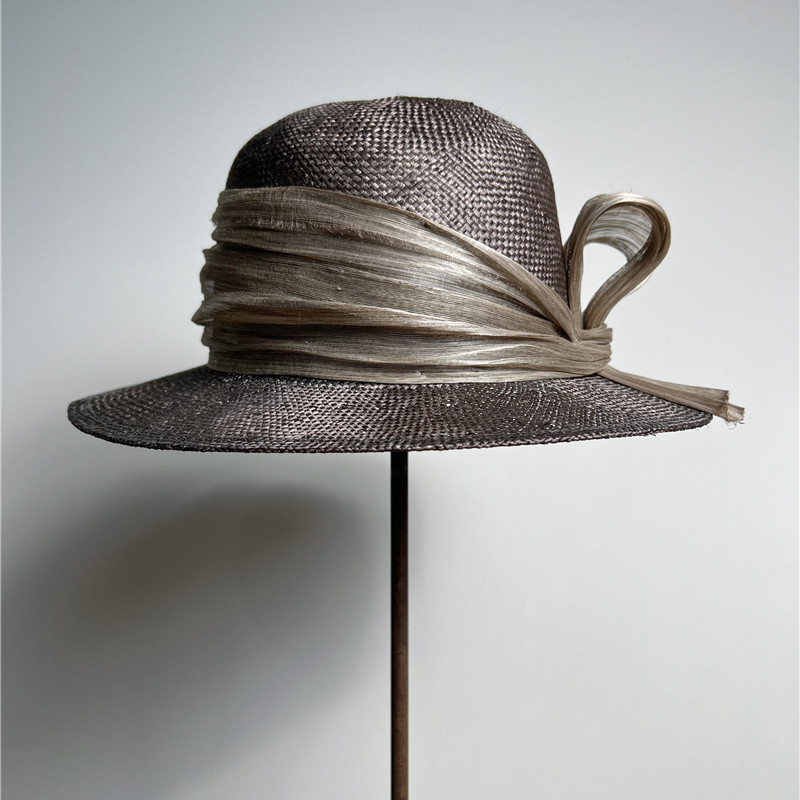 禾创社优雅简约高级手工女士帽子植物染赫本风法式 圆顶草编帽夏季
