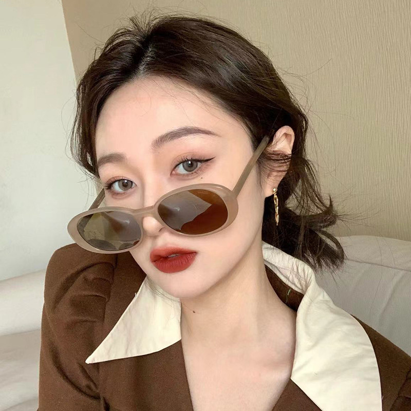 韩系椭圆茶色墨镜女ins潮显脸小素颜高级感防紫外线小香风太阳镜