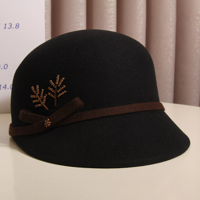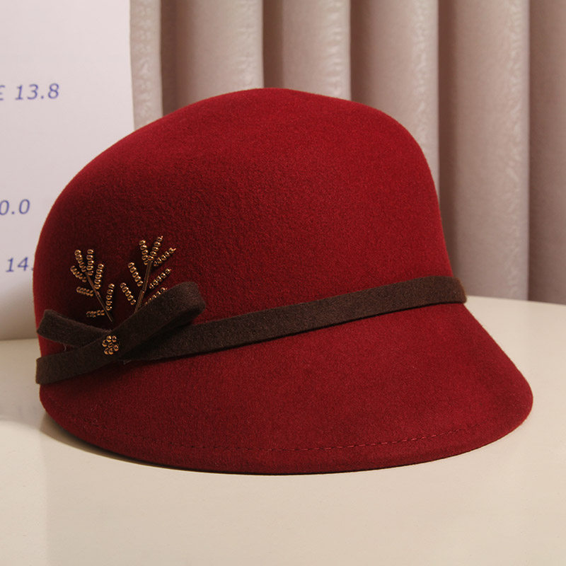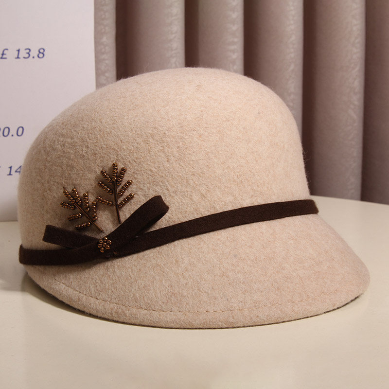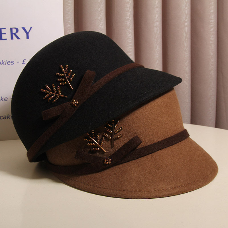 鸭舌帽子女秋冬优雅花朵羊毛呢马术帽英伦复古时尚 贝雷帽百搭礼帽