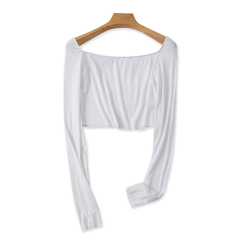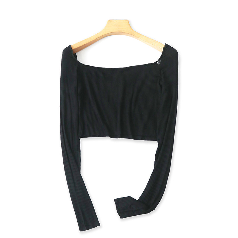 修身 一字肩短款 女套头上衣18063 长袖 弹力打底衫 T恤小衫 春秋新款