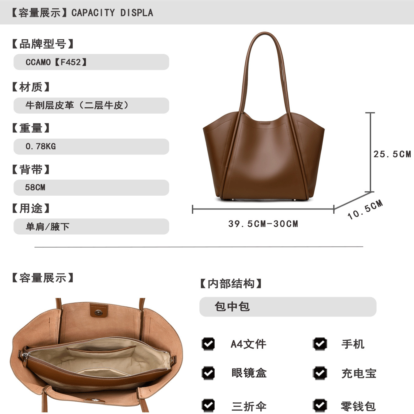 托特包百搭休闲包包女款 CCAMO真皮包包女式 2025新款 大容量单肩包