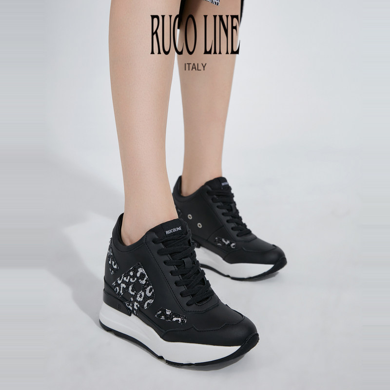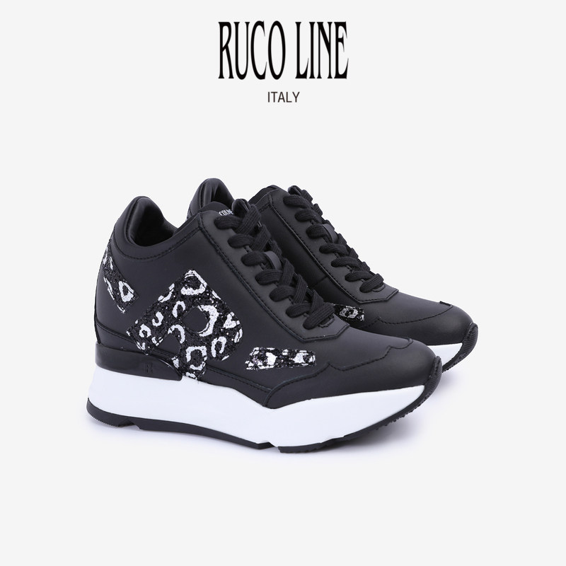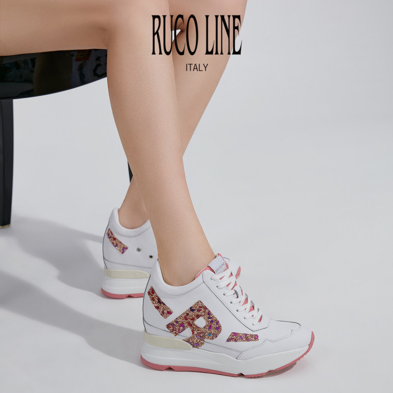 9cm厚底鞋 Ruco Line如卡莱意大利女奢华亮片真皮内增高运动跑鞋