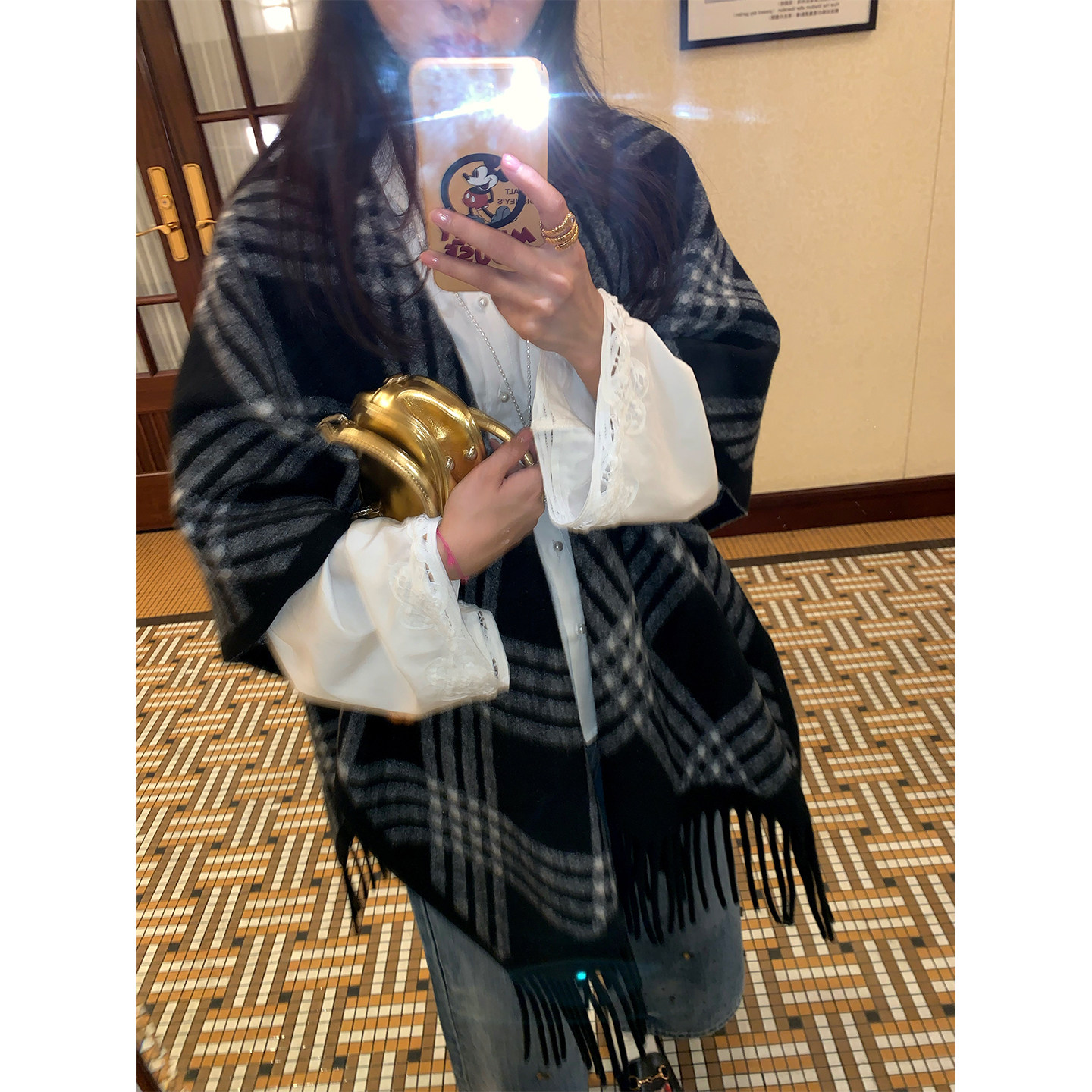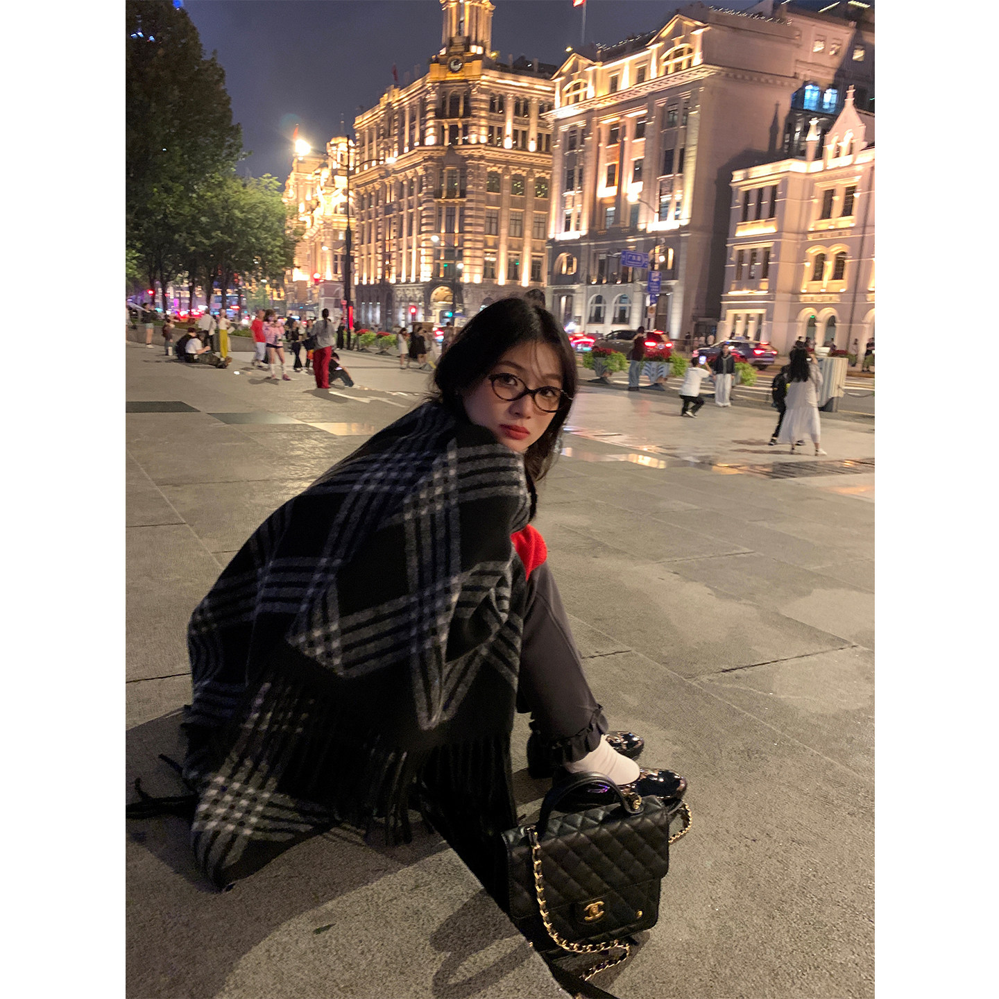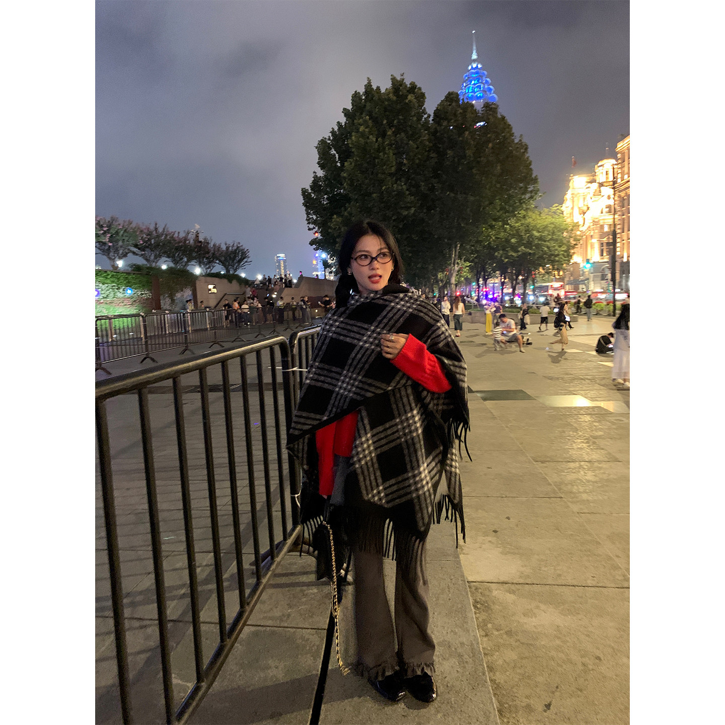 落落狷介 披肩外搭女2025新款 格子围巾仿羊绒百搭保暖流苏外搭