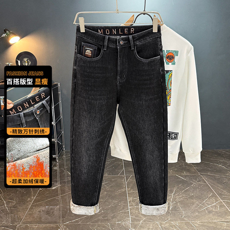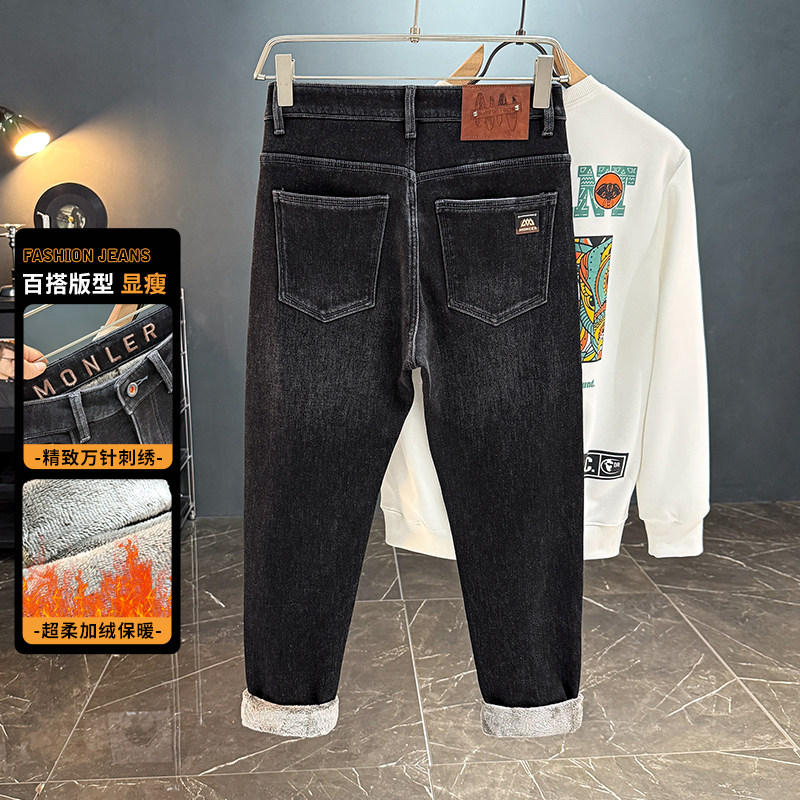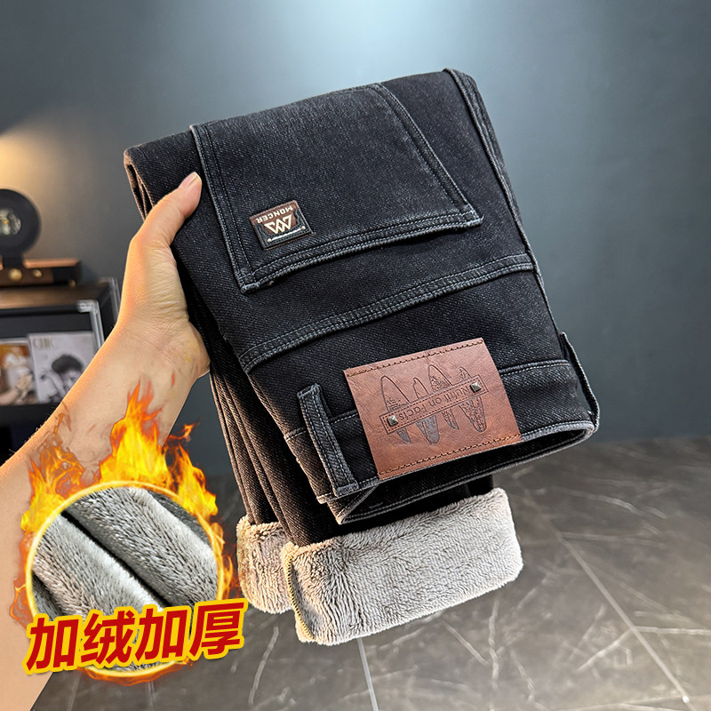 牛仔裤 高弹力水洗直筒裤 休闲百搭男款 秋冬加绒加厚男士 长裤 子8832