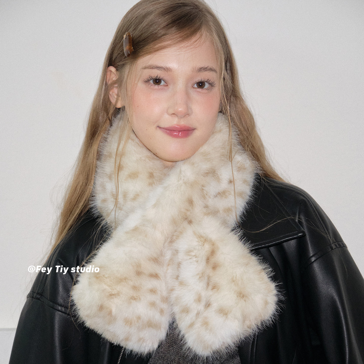feytiy 斯拉夫女孩 豹纹围脖寒冬凹造型百搭保暖仿皮草毛绒绒围巾