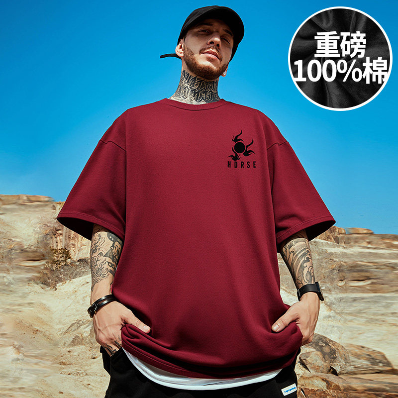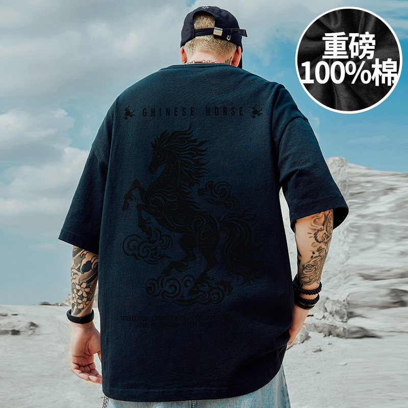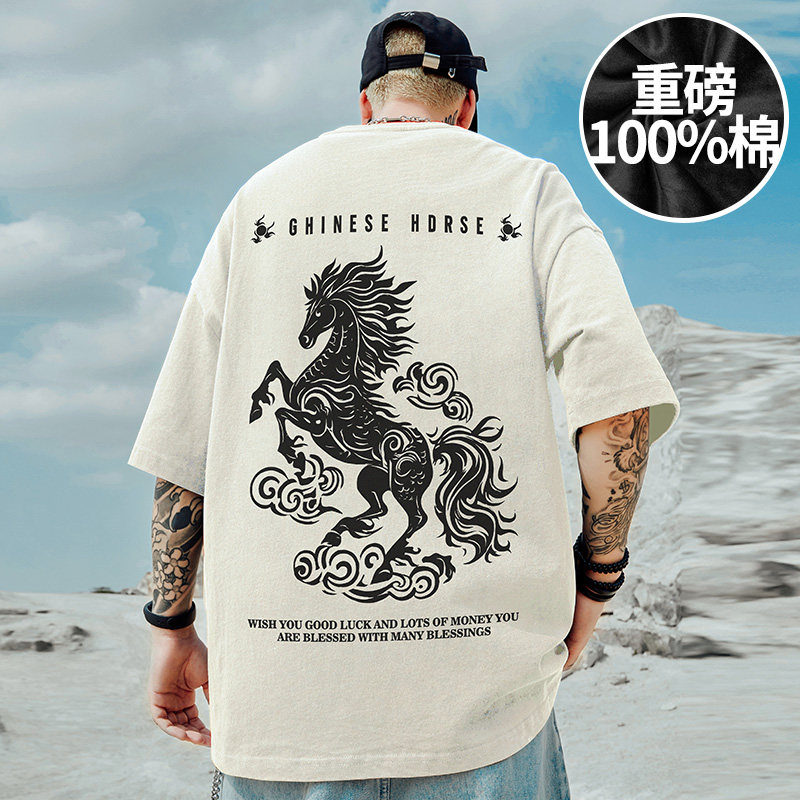 本命年红色短袖 上衣服半袖 t恤男胖2026新年重磅纯棉夏季 马年大码