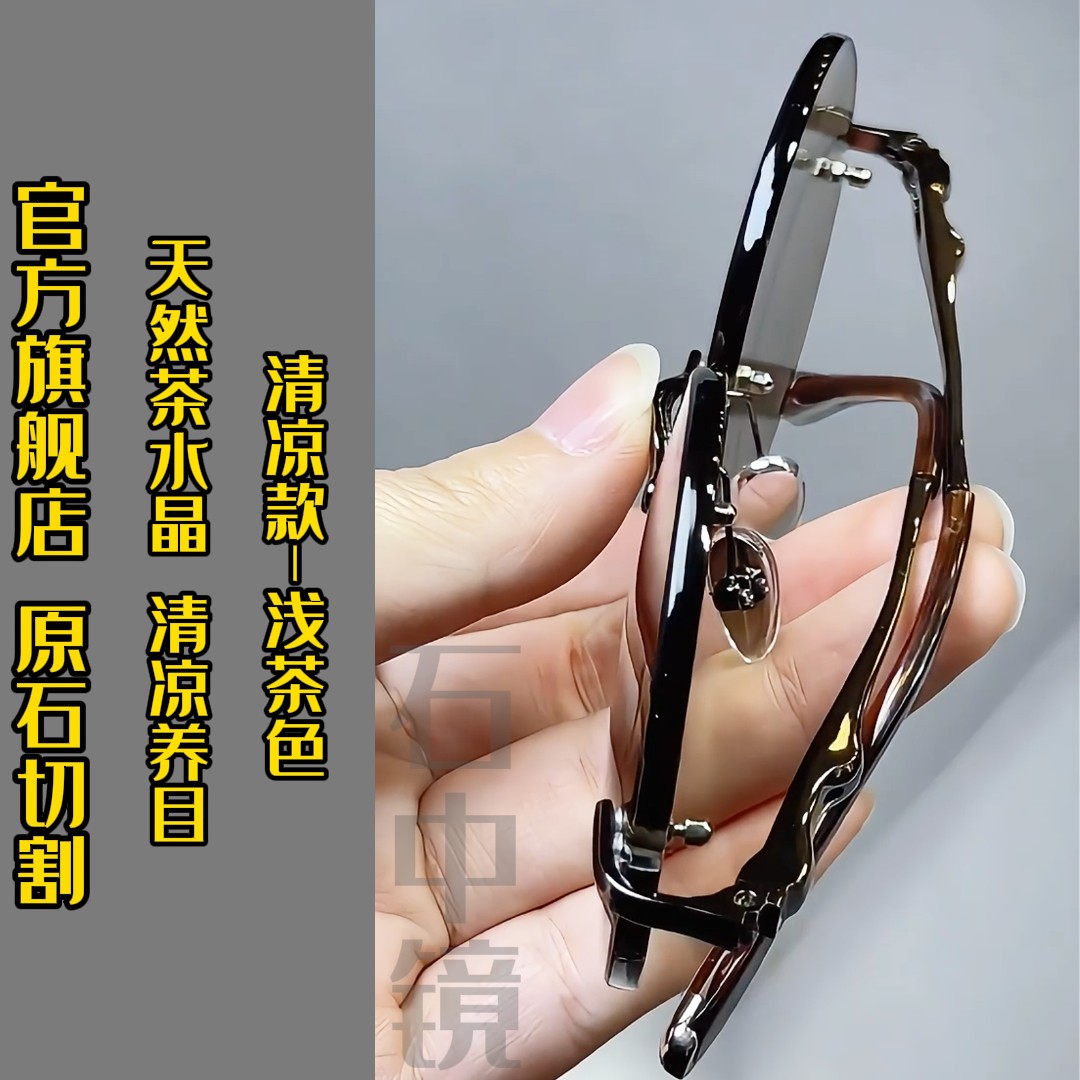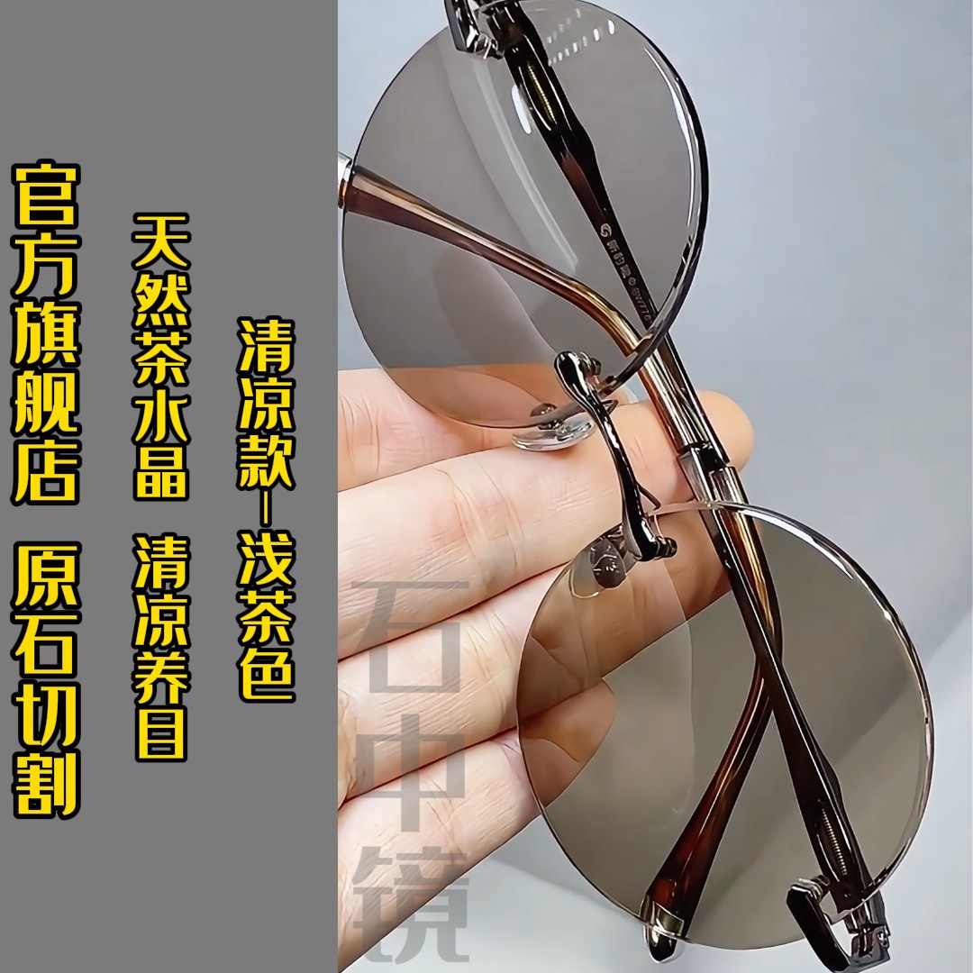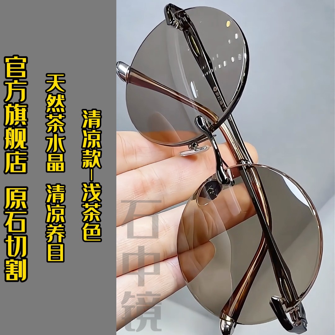 真水晶眼镜墨镜水晶太阳镜墨镜石头镜超清晰清凉护目抗疲劳防辐射