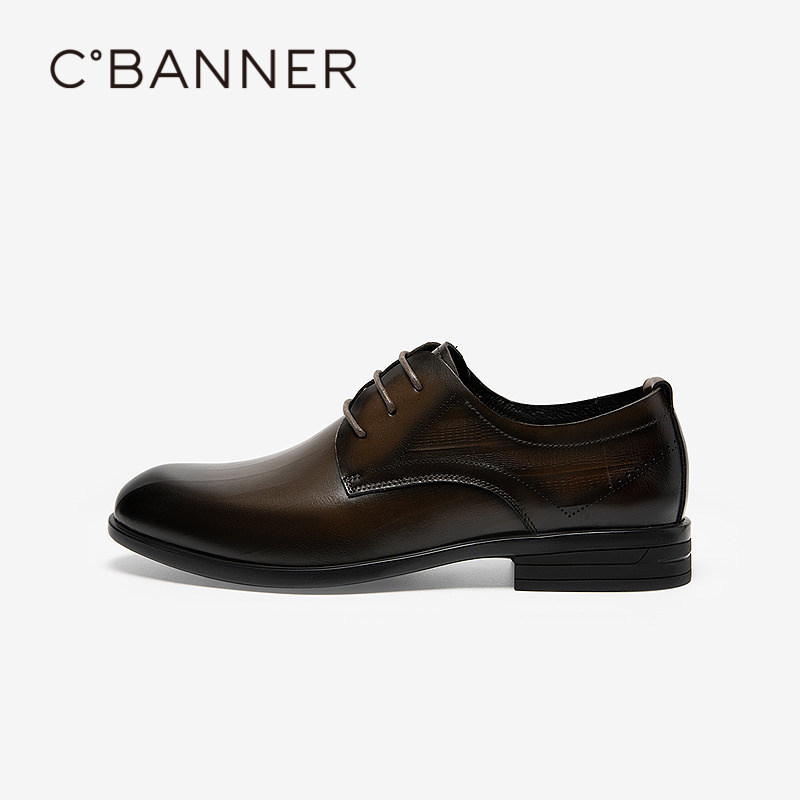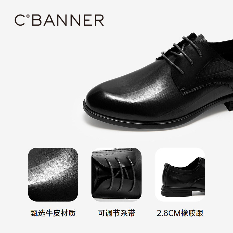 商务休闲英伦风大头皮鞋 千百度男鞋 气质百搭 新款 男士 真皮正装 皮鞋