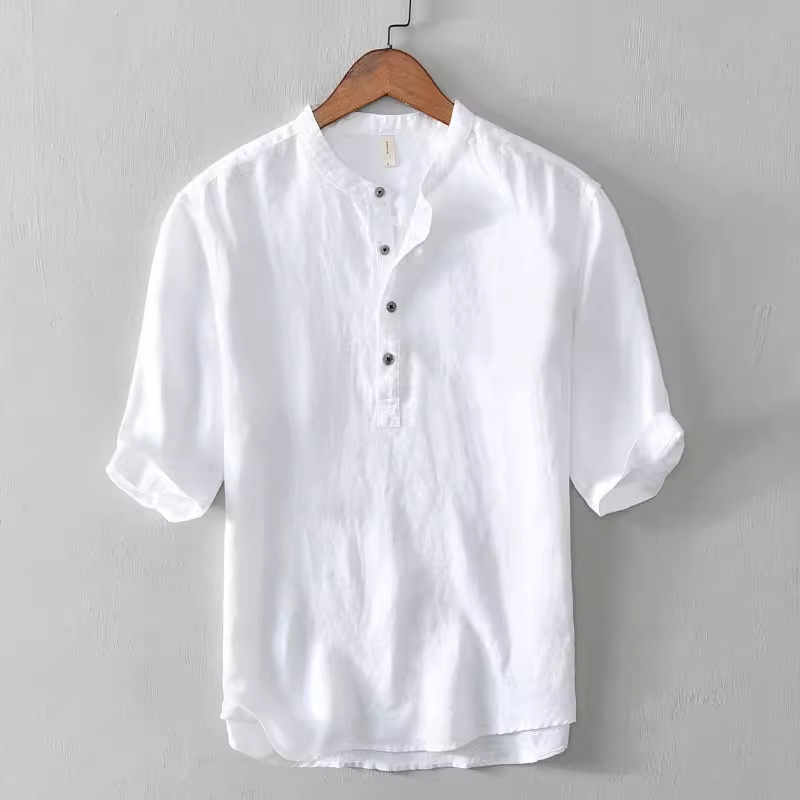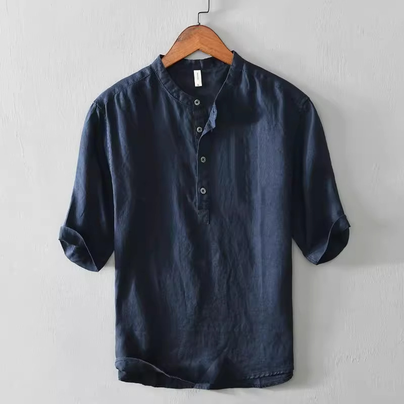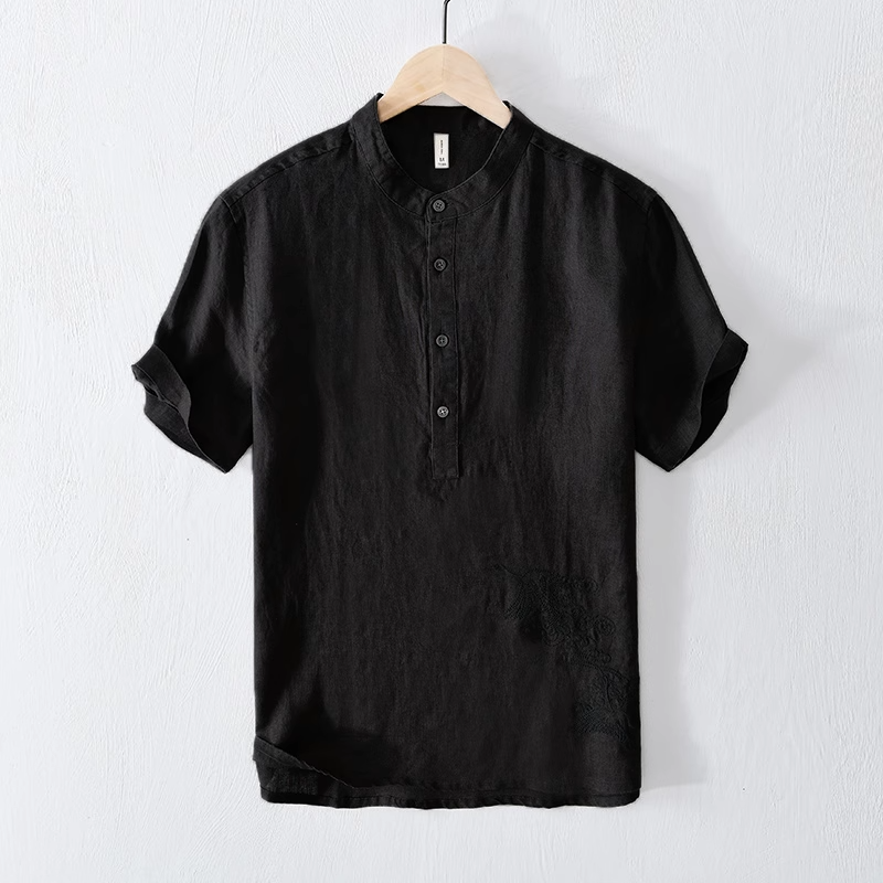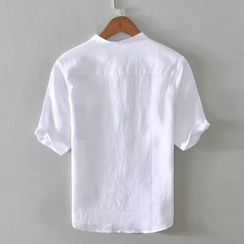 衬衫 特大码 夏季 休闲立领半袖 300斤复古亚麻短袖 T恤棉麻中国风男士