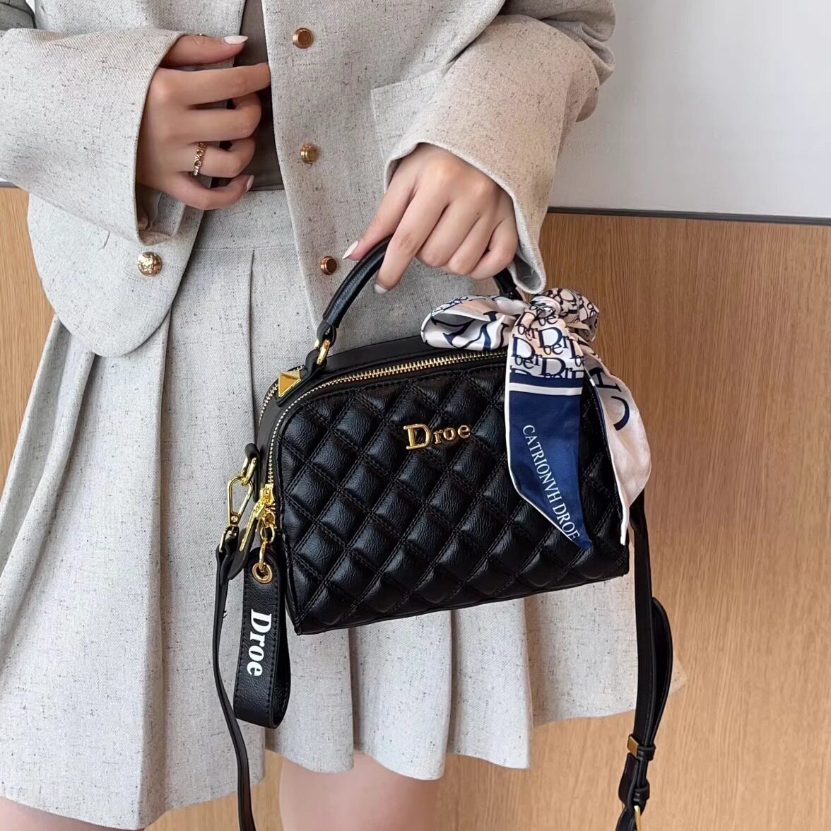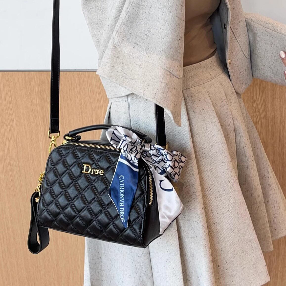 香港品牌Droe正品 真皮高级感小香风菱格包手提单肩枕头包斜挎包女