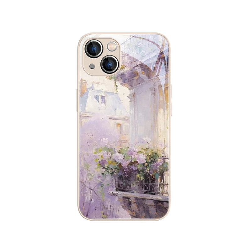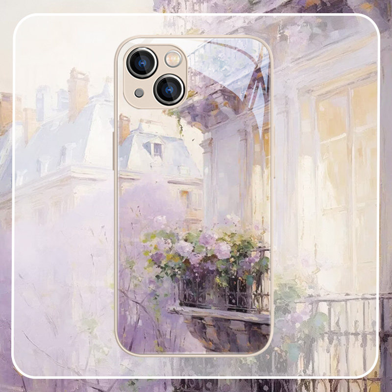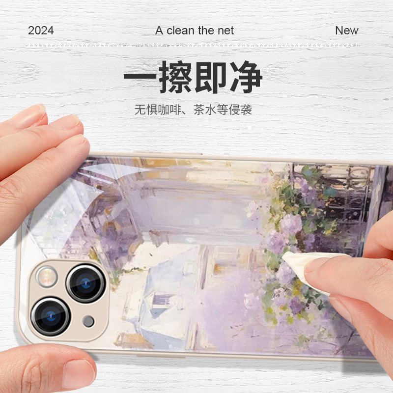 15promax新款 莫奈花园手机壳适用苹果17系列 iPhone14pro花朵13紫色12mini高颜值11小清新xsmax春天xr金属