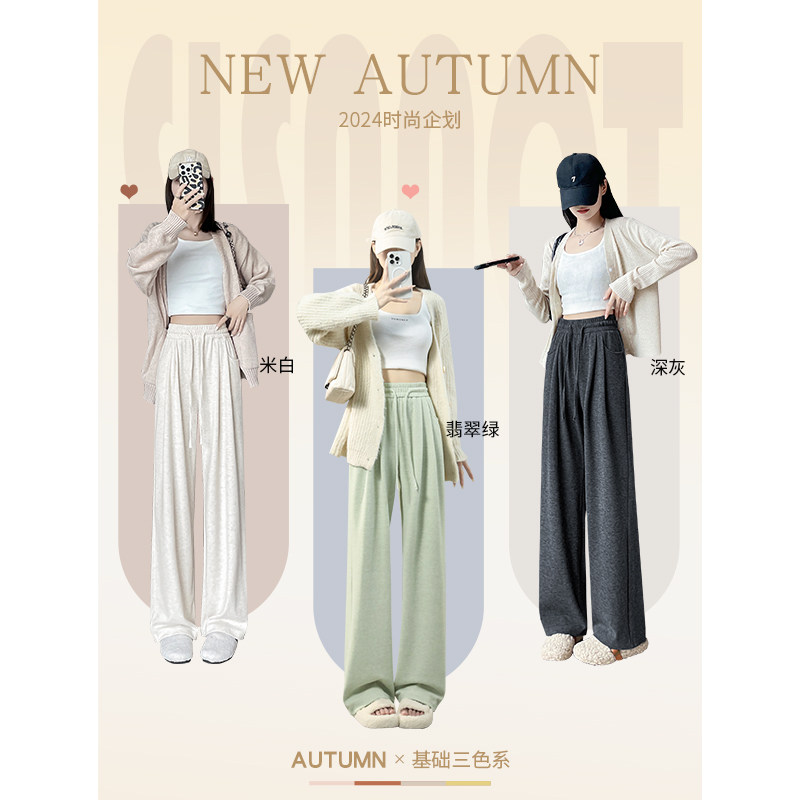 加绒糯米裤 子 阔腿裤 女秋冬2026新款 宽松垂坠感软糯休闲小个子窄版