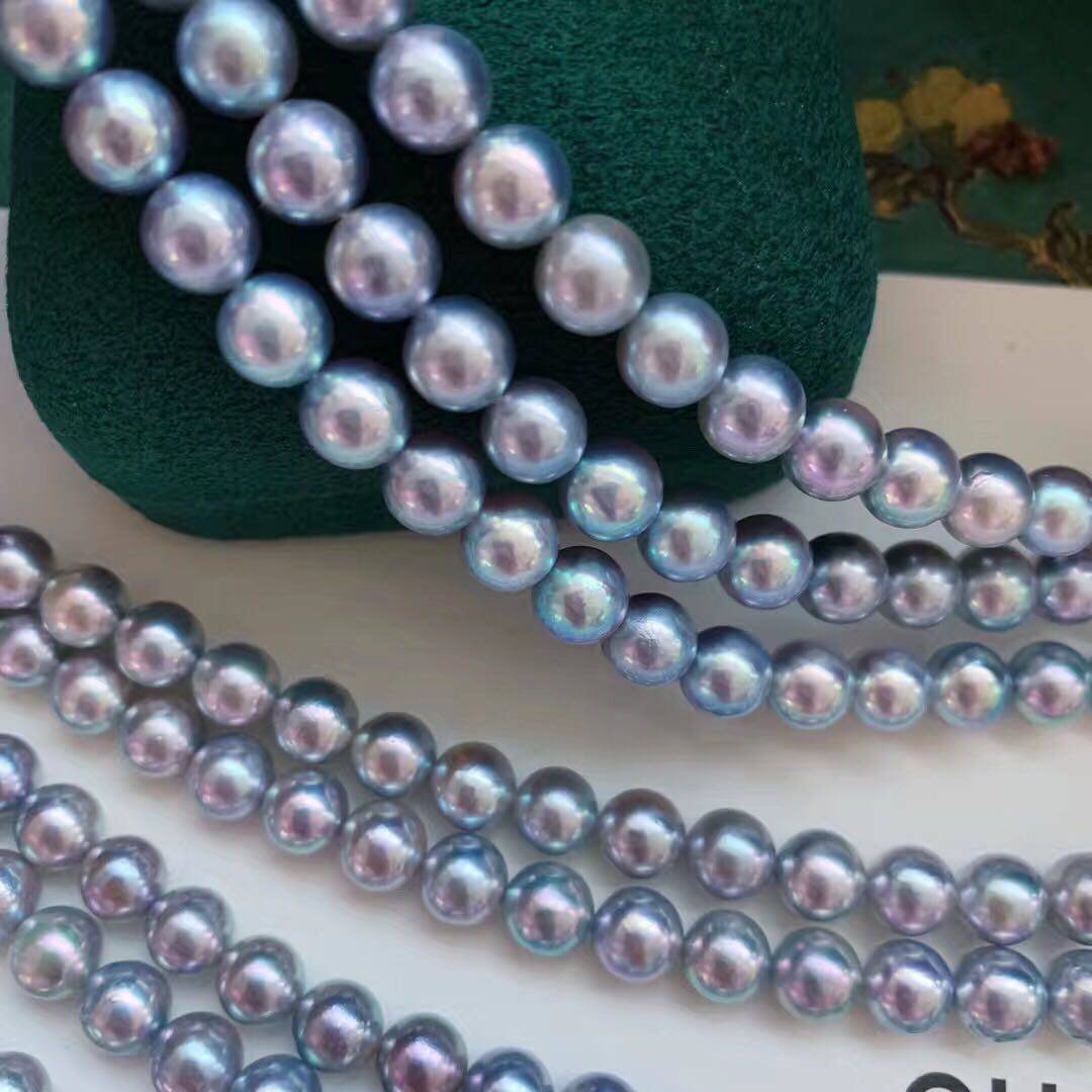 真多麻7 7.5mm日本akoya银蓝灰人鱼姬色天然色无优化无调色深蓝色