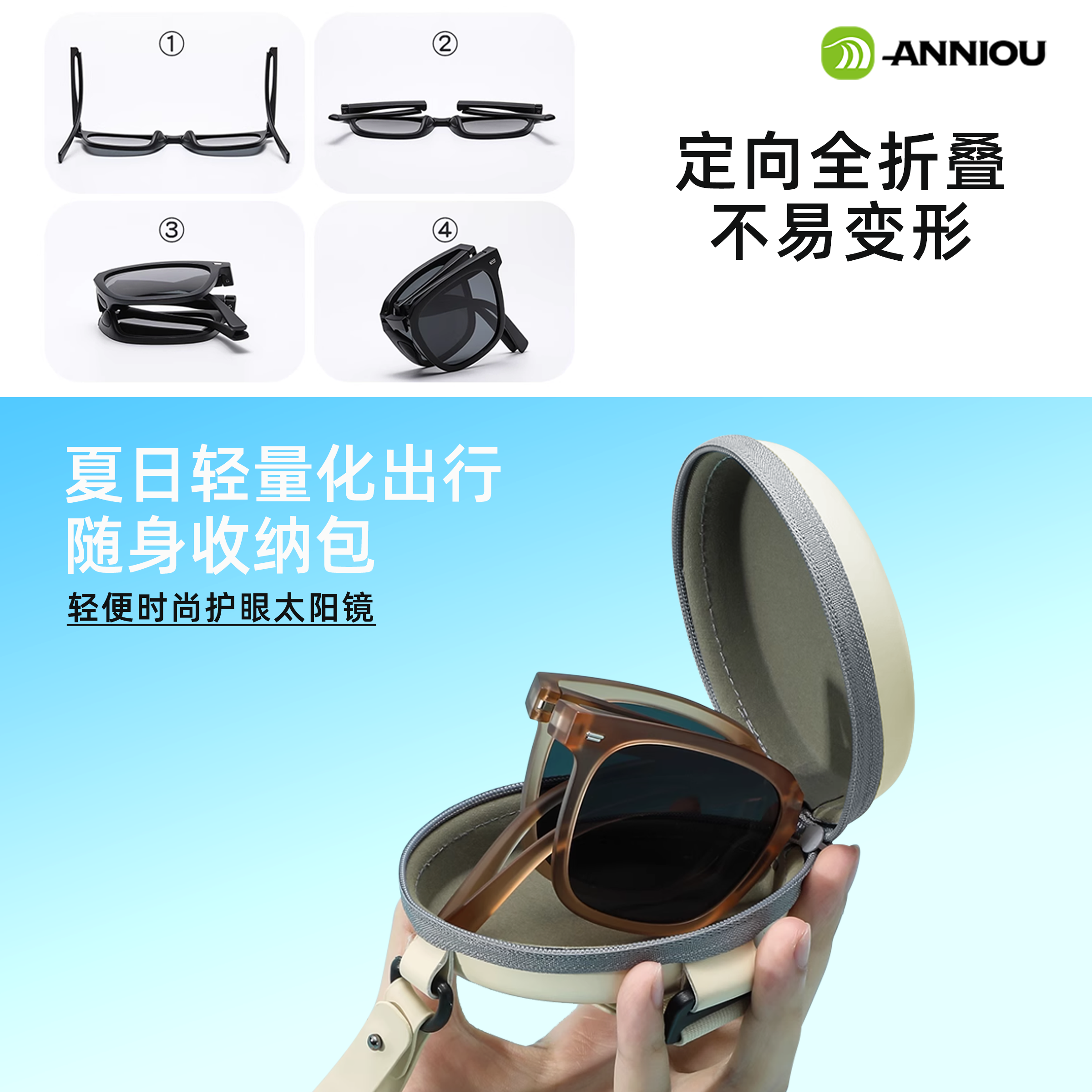 安尼欧偏光太阳镜明星同款 黑框超大框墨镜显瘦防晒开车骑行可折叠