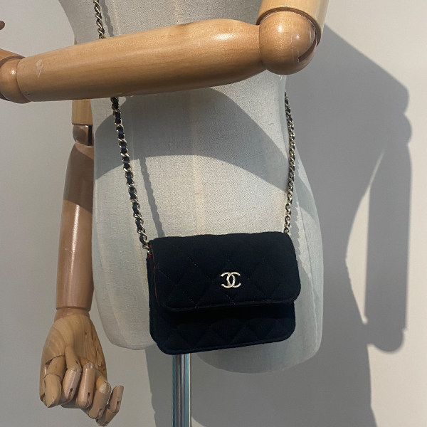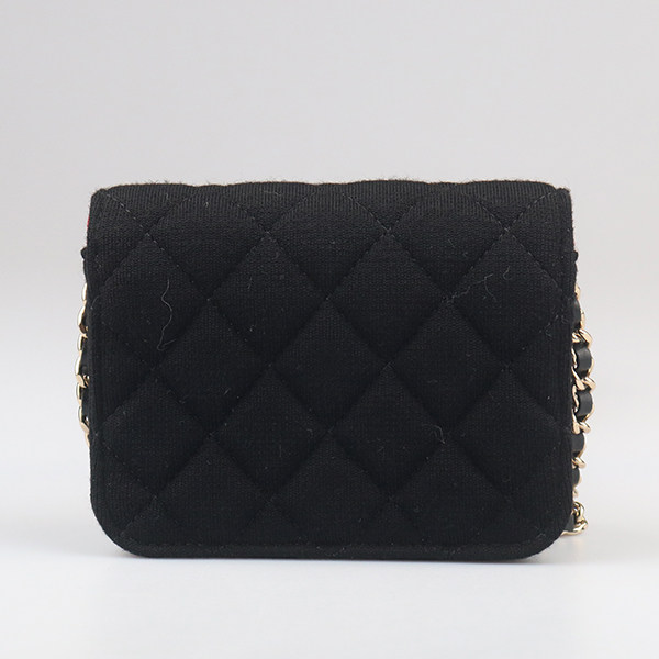 9新CHANEL香奈儿CLUTCH WITH CHAIN黑织物迷你链条二手奢侈品包包