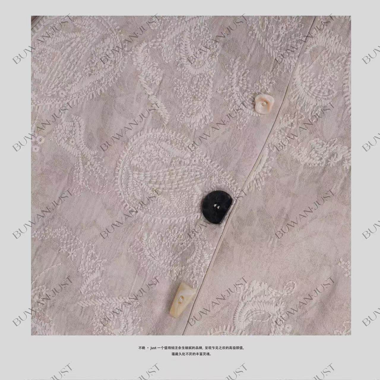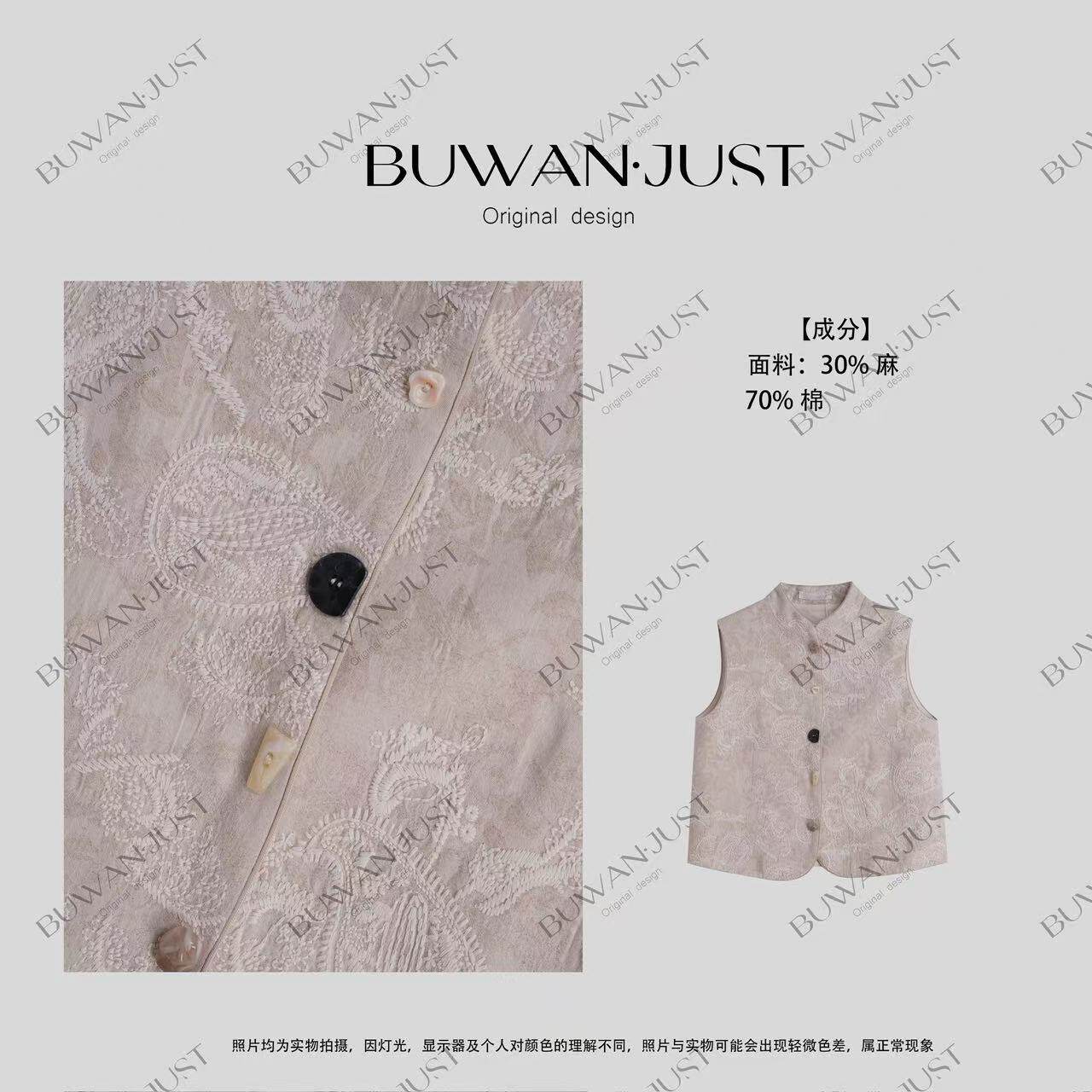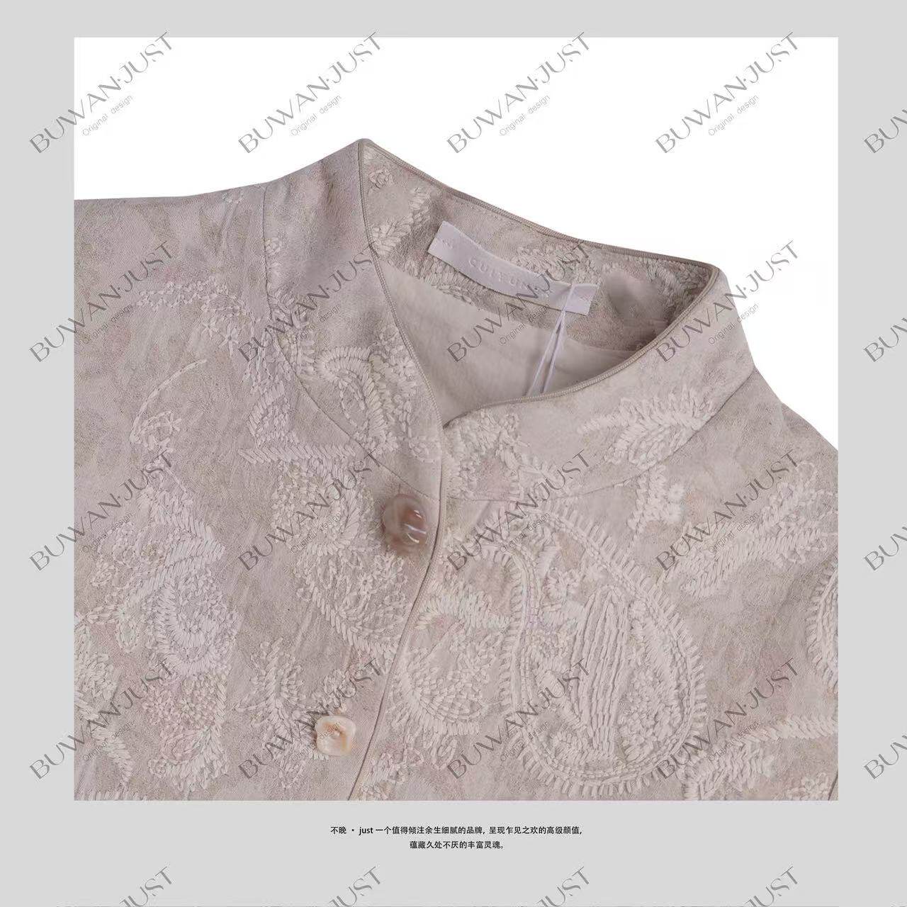 不晚BUWANJUST 国色天香 高品亚麻提花手工绣精致感马甲B1173