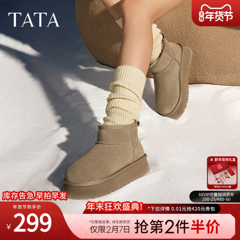 TATA他她面包靴户外厚底雪地靴保暖加绒毛毛短靴棉鞋 CDE04DD4E