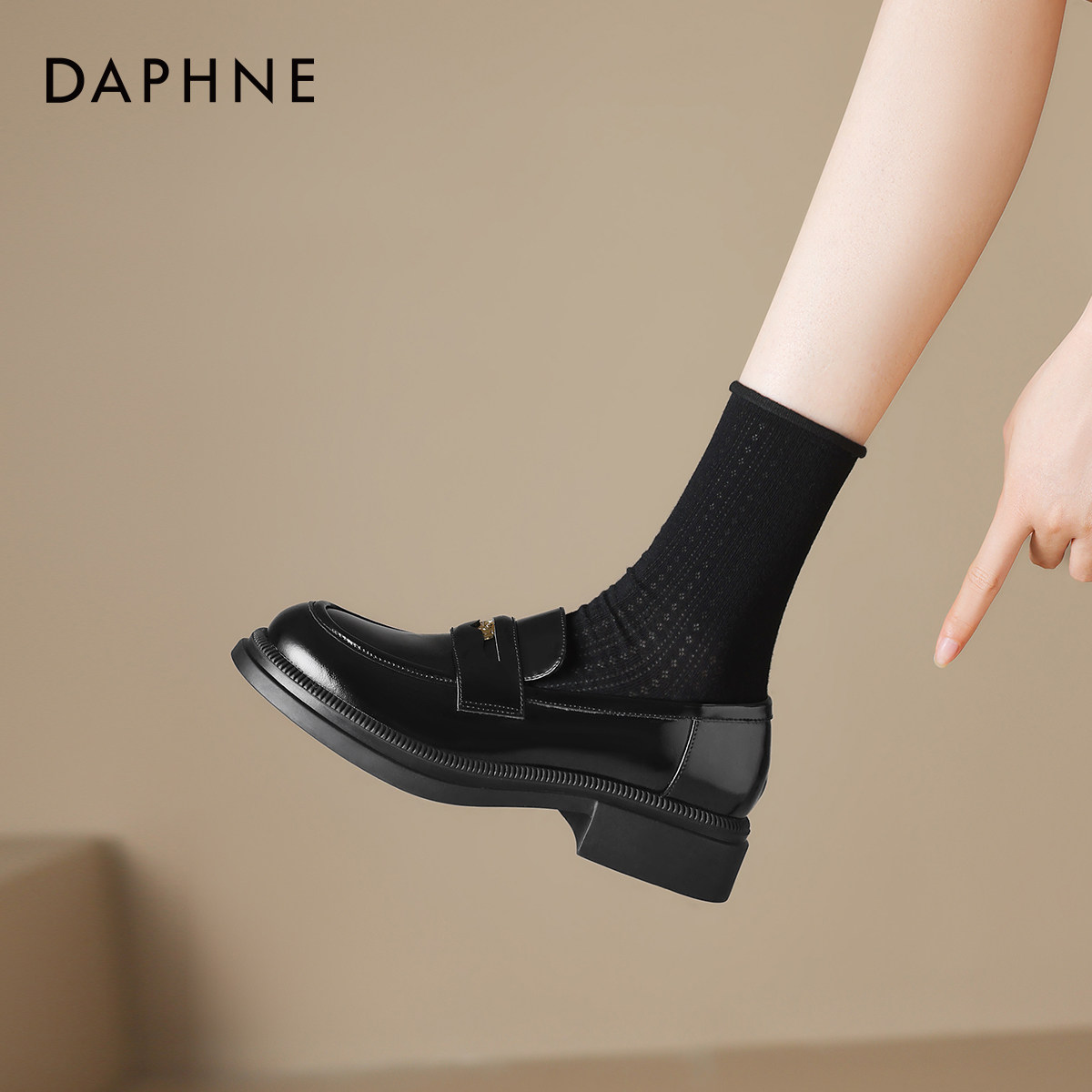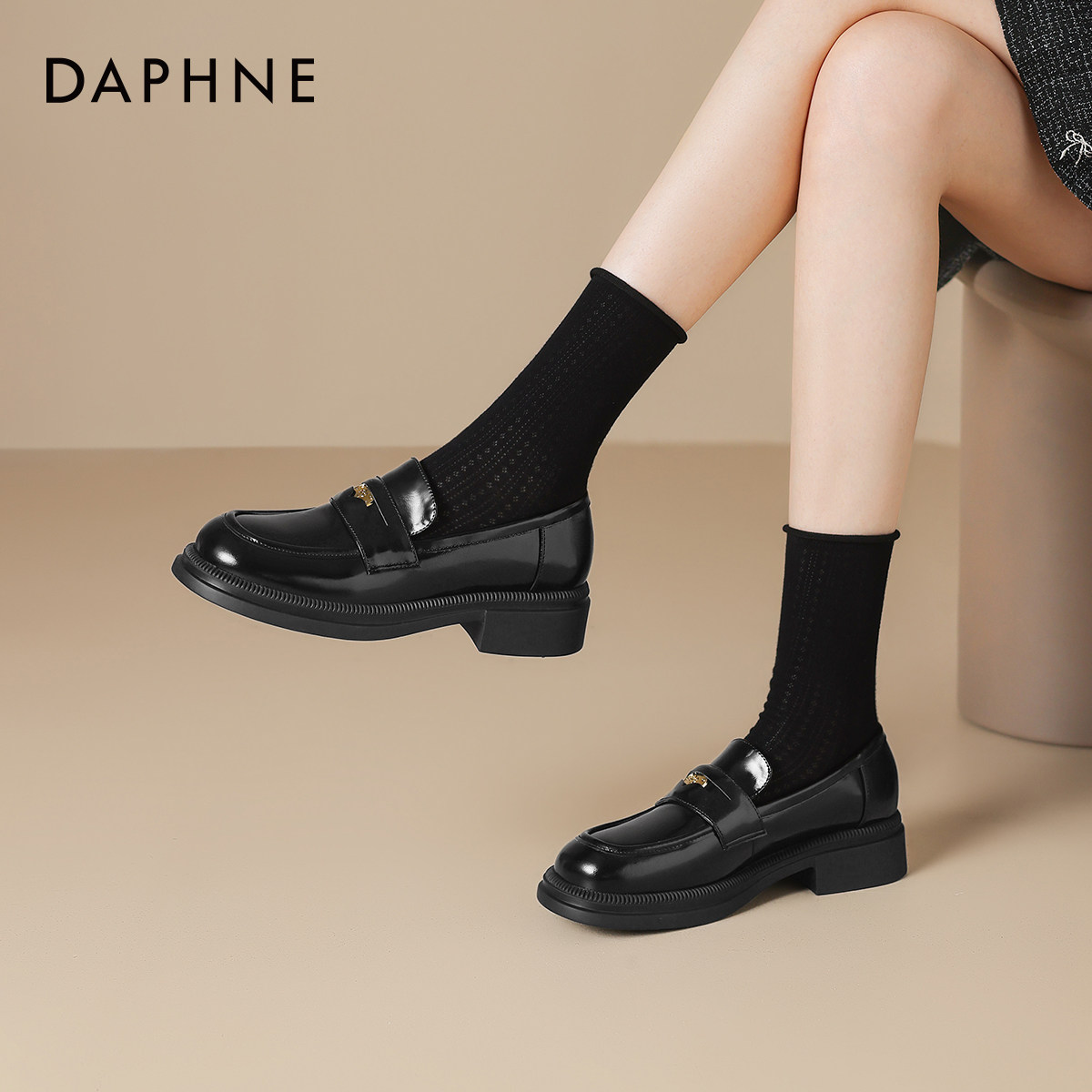 2026新款 英伦风小皮鞋 黑色通勤女士女款 达芙妮金币乐福鞋 百搭单鞋