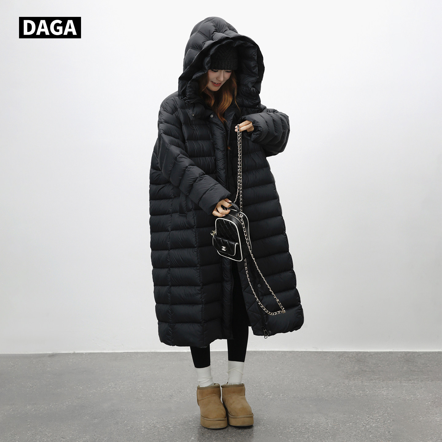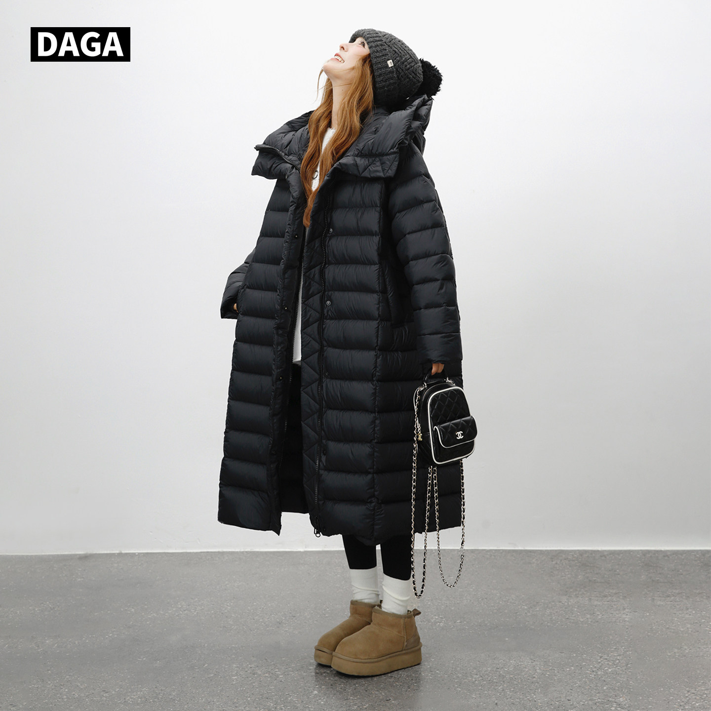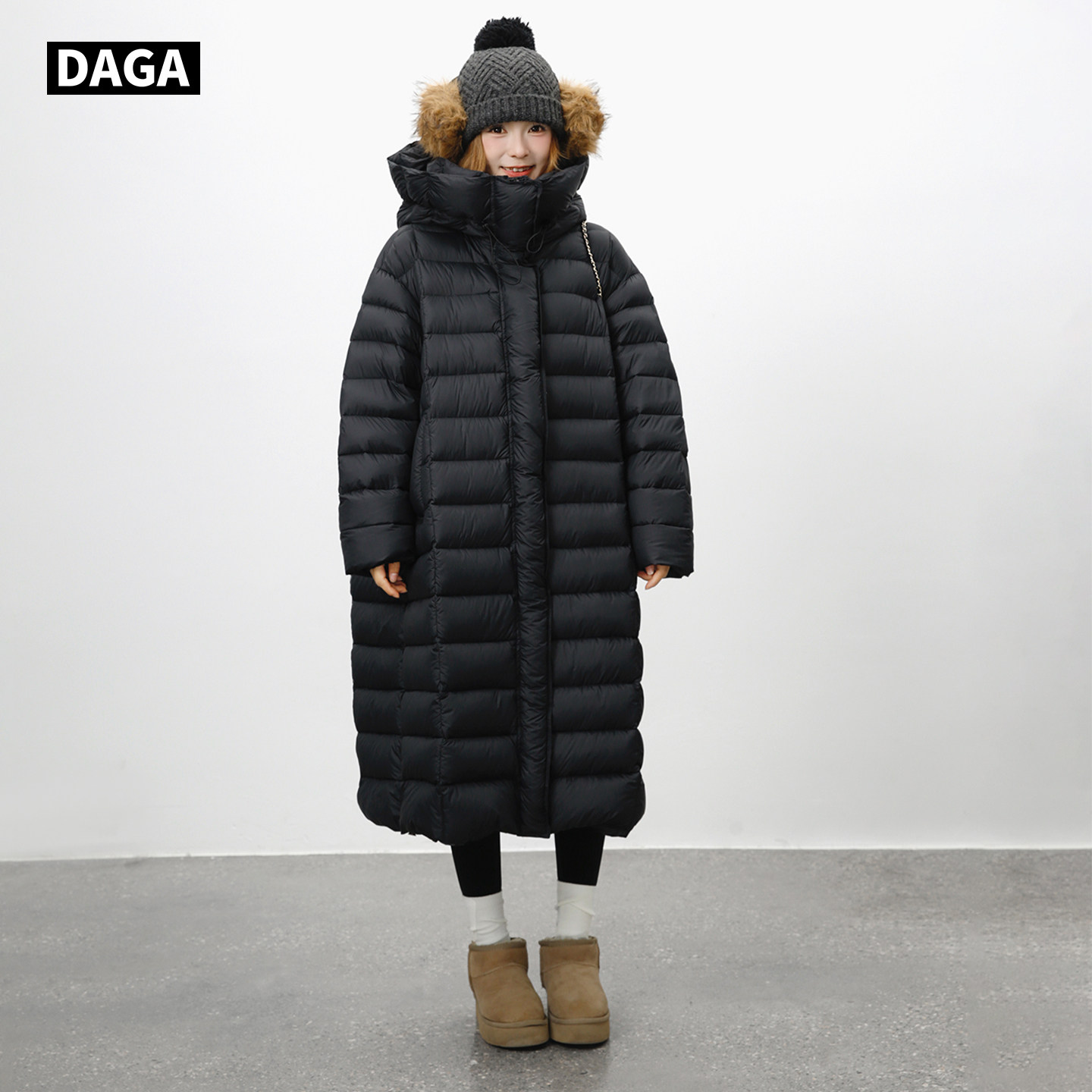 大嘎daga 连帽长款 黑武士 高充绒轻暖极寒排骨羽绒服女2025新款