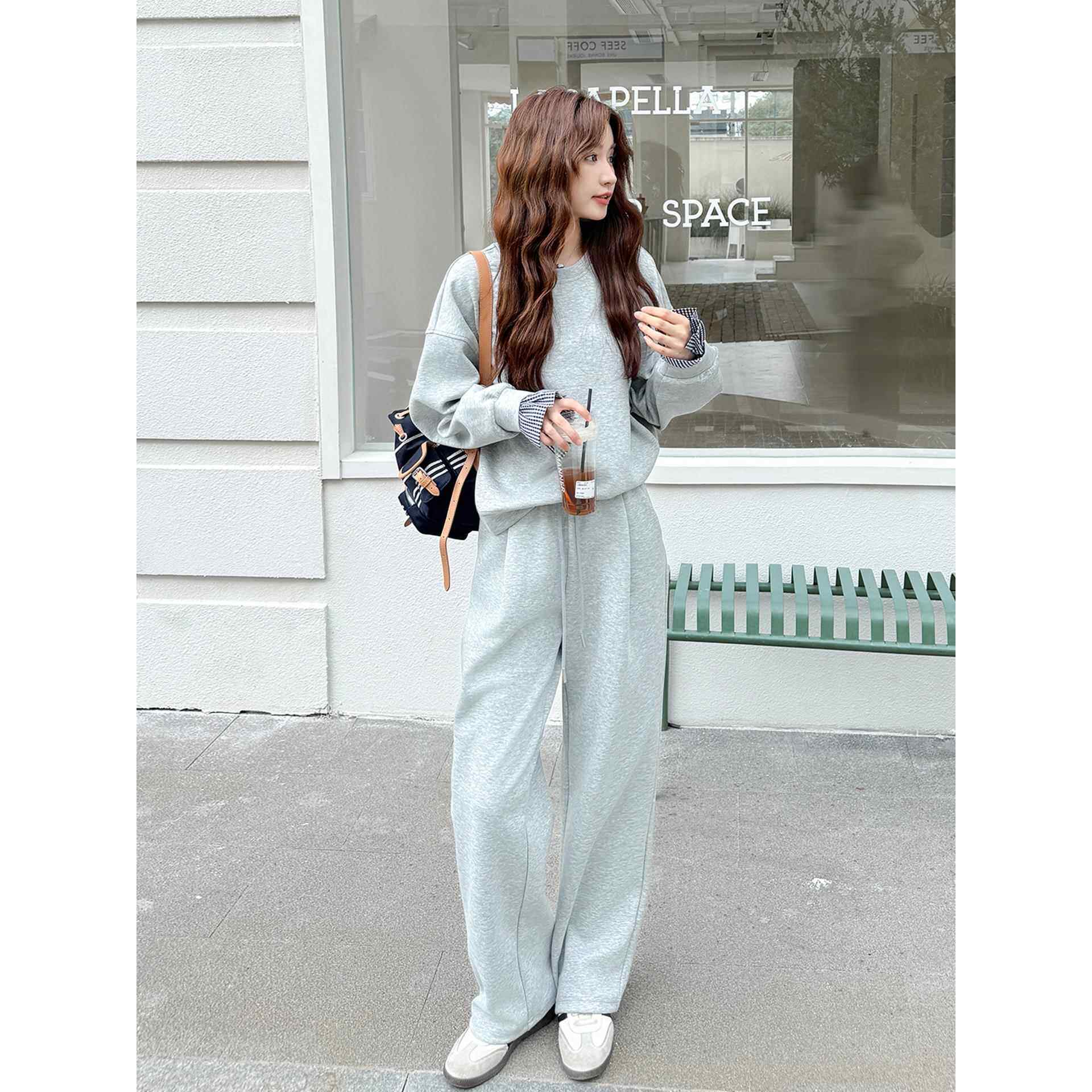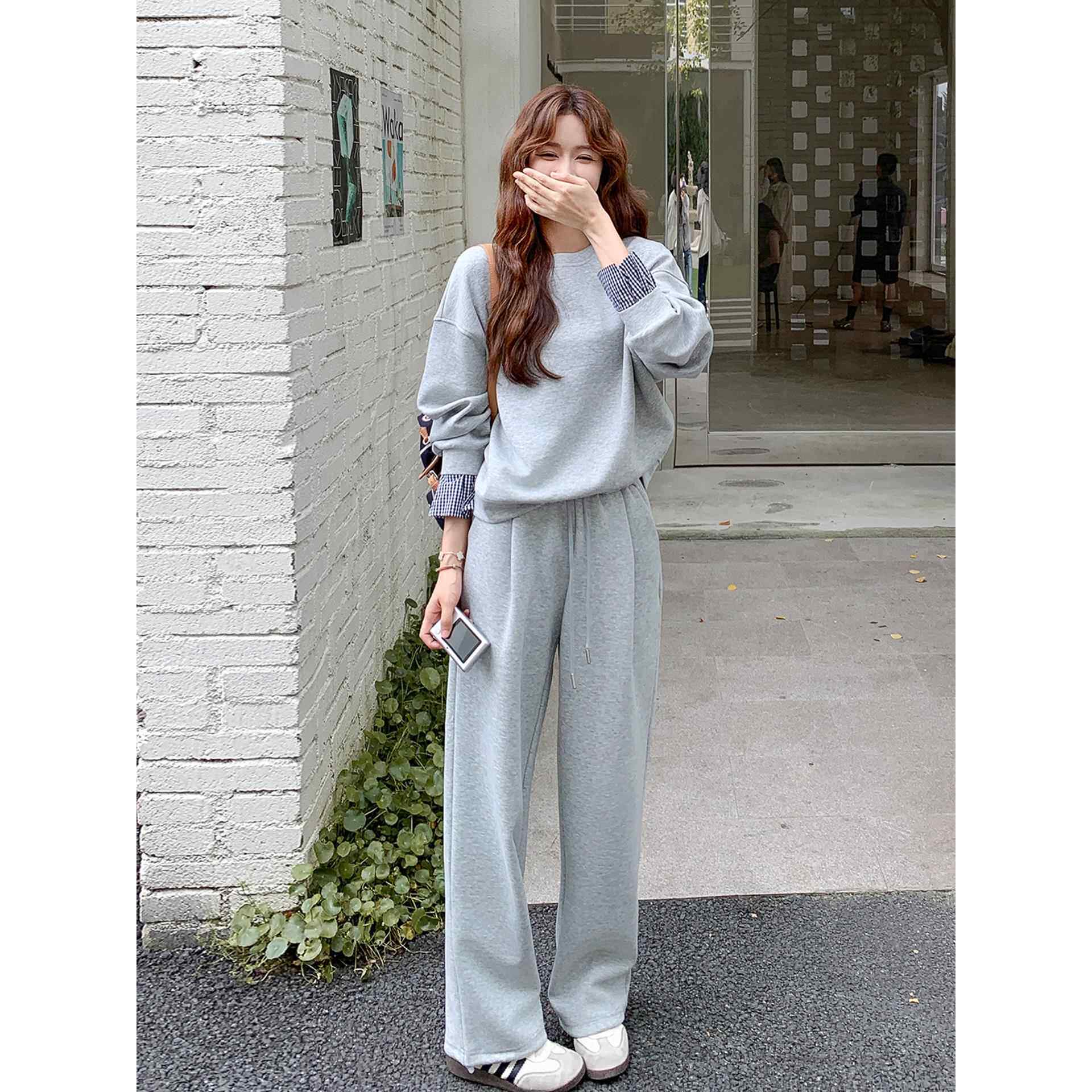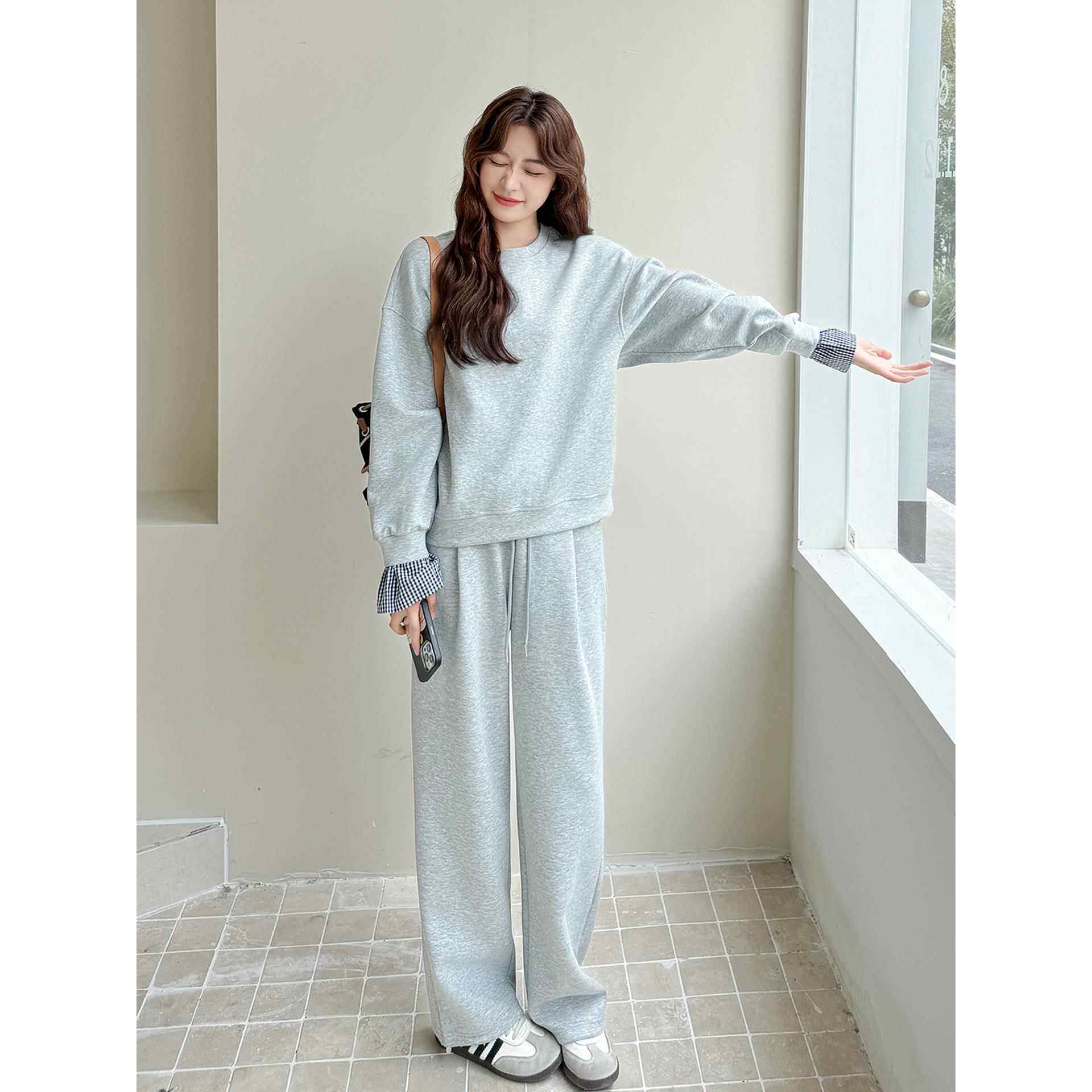 休闲显瘦长裤 灰色盐甜系穿搭减龄卫衣运动套装 女秋2025新款 两件套