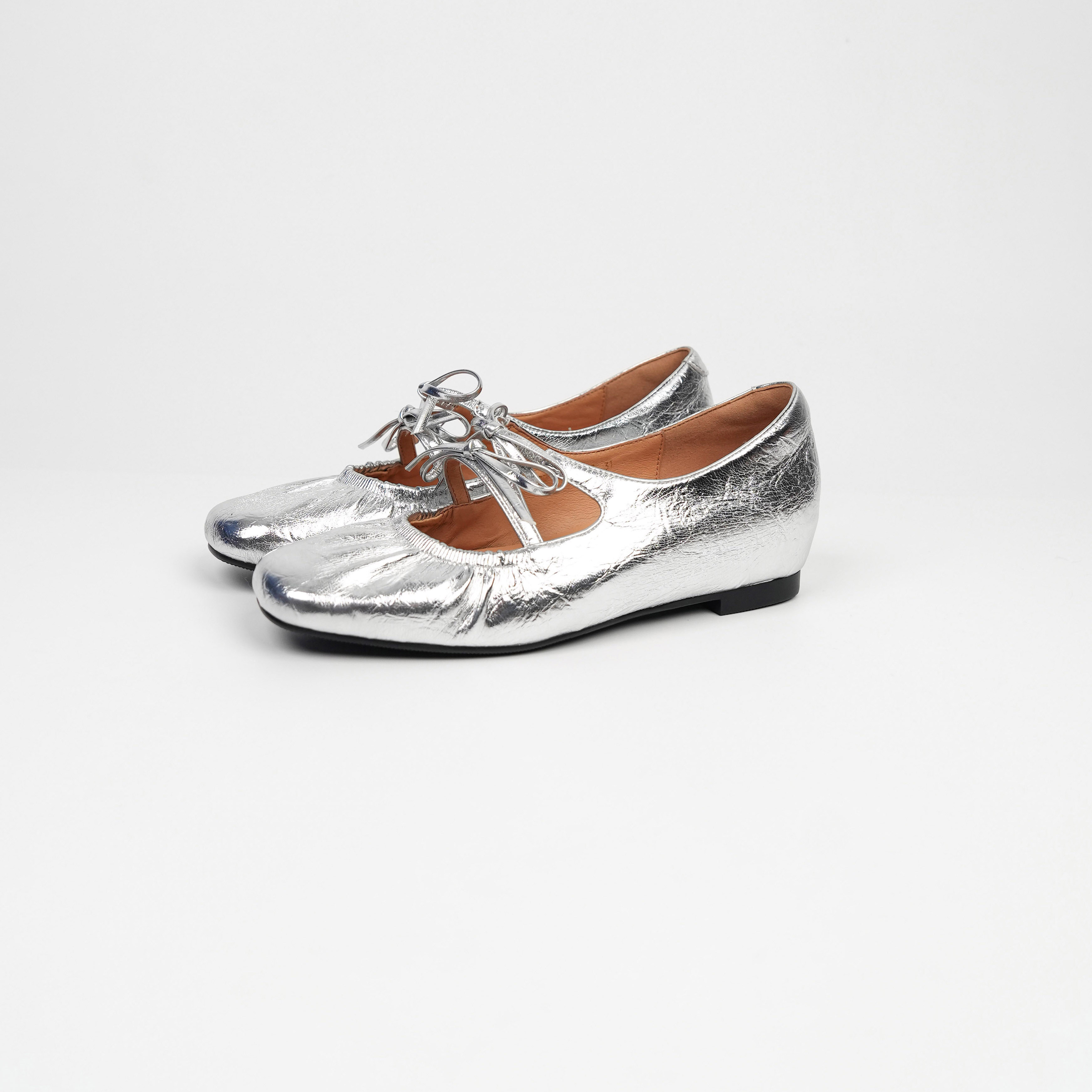 低跟真皮软面学生鞋 Fermina 新款 蝴蝶结浅口单鞋 银色玛丽珍鞋 春季