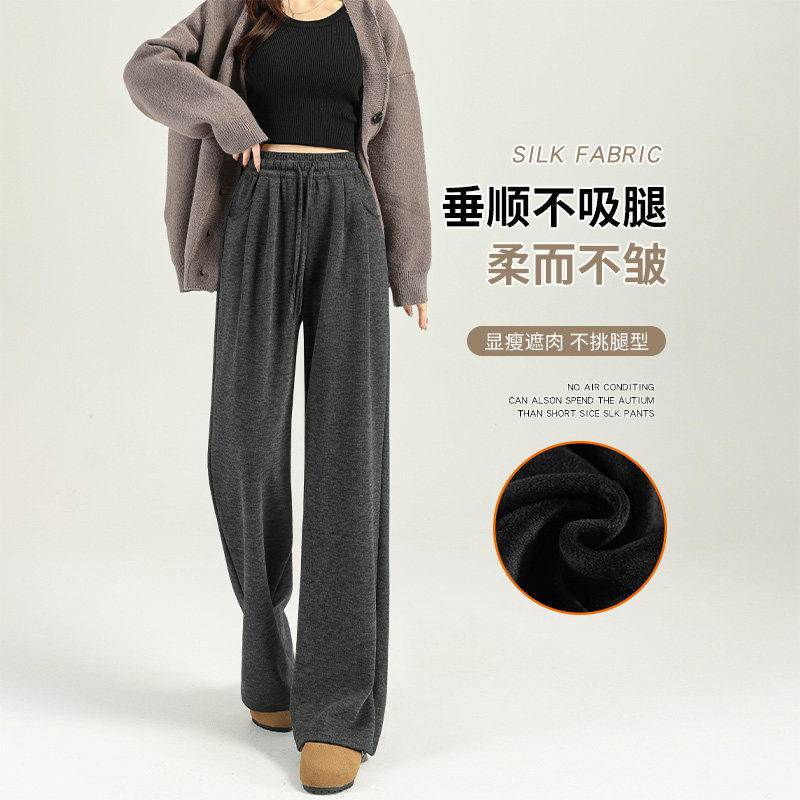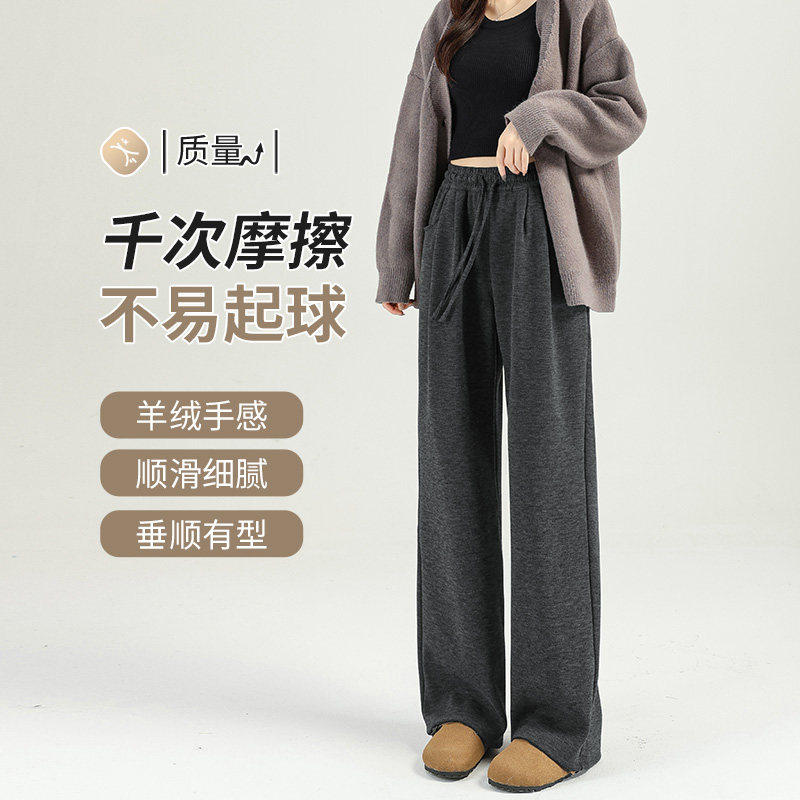 加绒糯米裤 直筒灰色阔腿裤 女2026新款 秋冬垂坠感软糯休闲宽松窄版