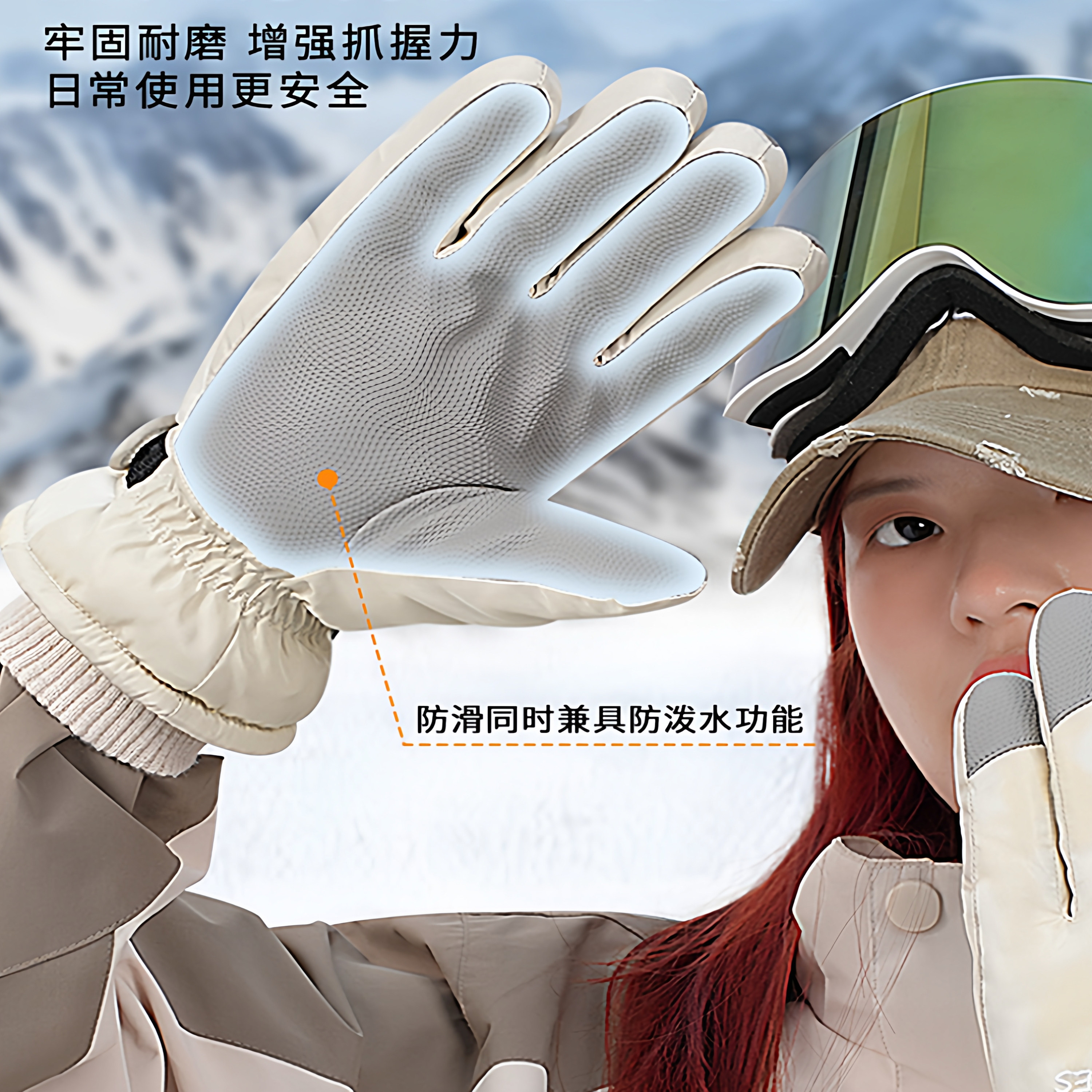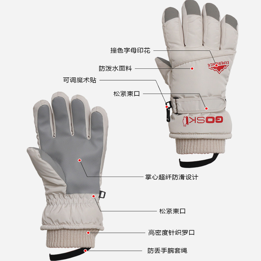 滑雪手套男士 冬天骑行防寒加绒厚保暖电动车棉手套女冬季 防水防风