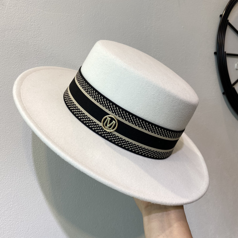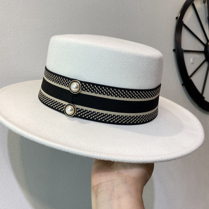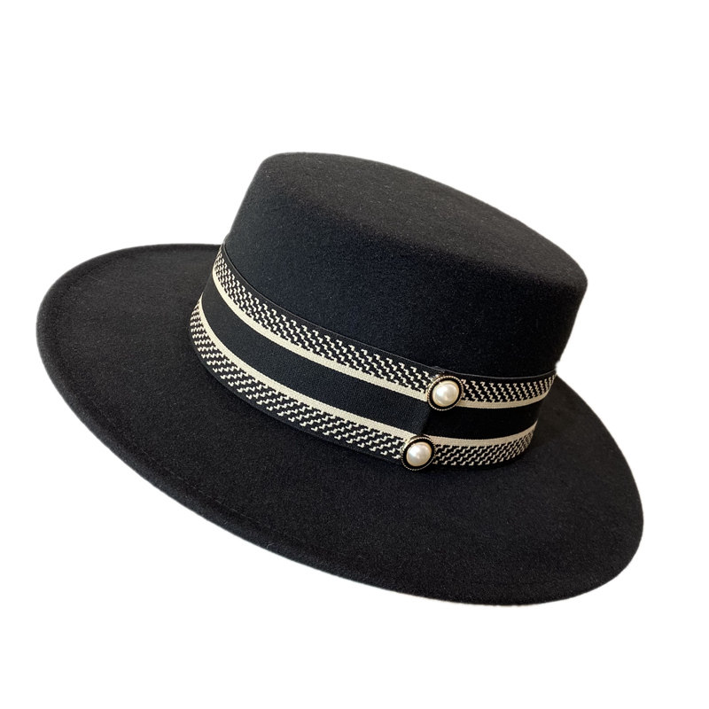 秋冬季 女士英伦欧美风毛呢礼帽优雅气质宽檐平顶帽网红黑色爵士帽