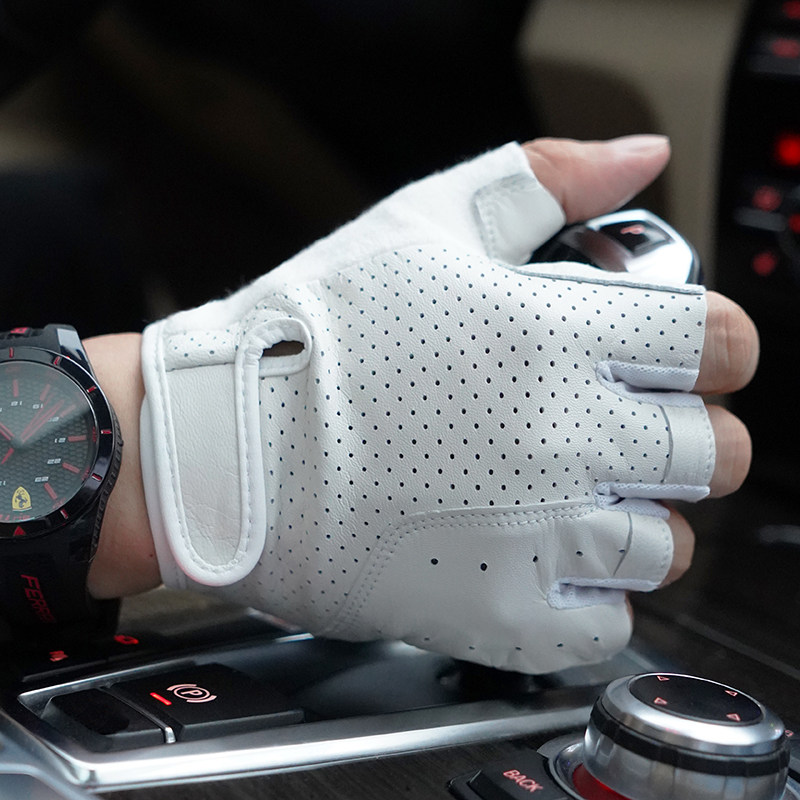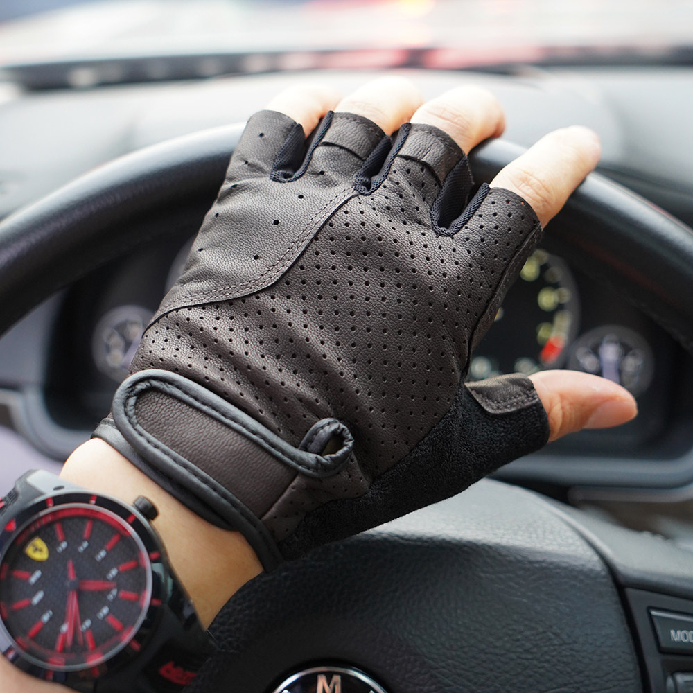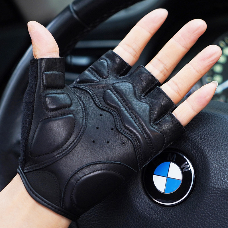 罗欧蒂斯男士 运动机车手套户外骑行皮手套摩托车手套半指皮手套男