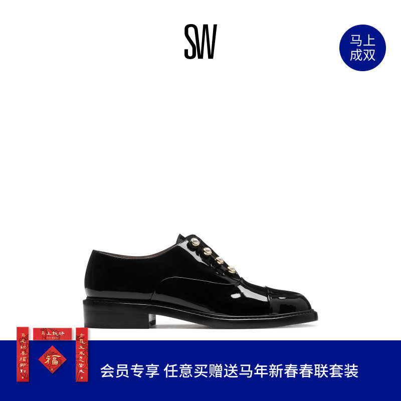Weitzman 女德比鞋 珍珠装 Stuart 小皮鞋 MRSPATS 饰粗跟乐福鞋