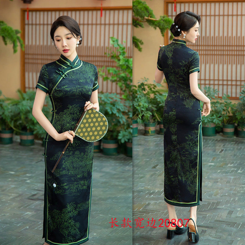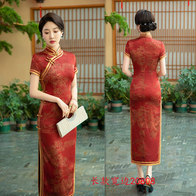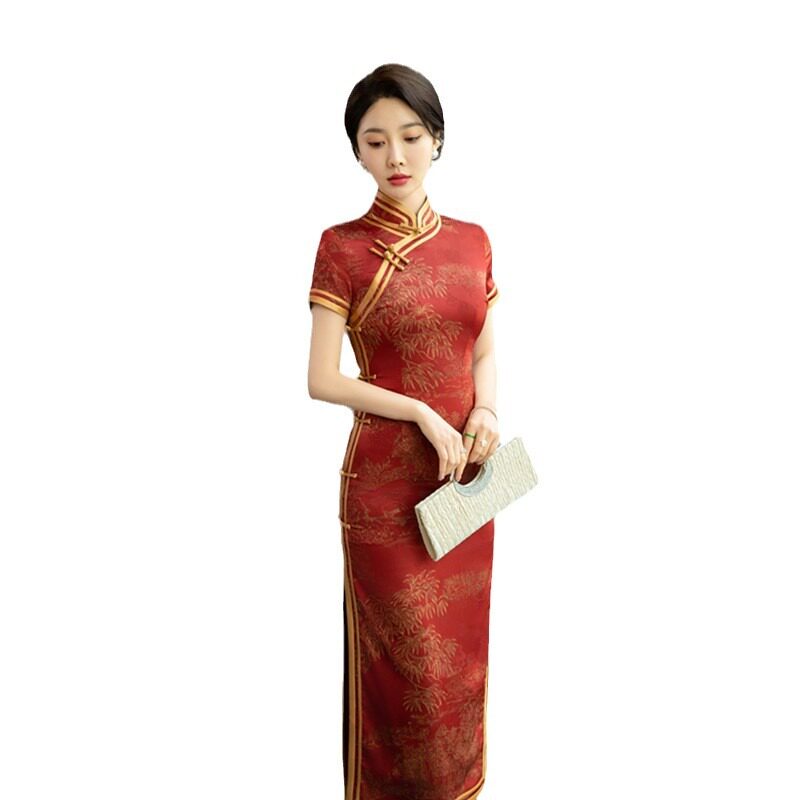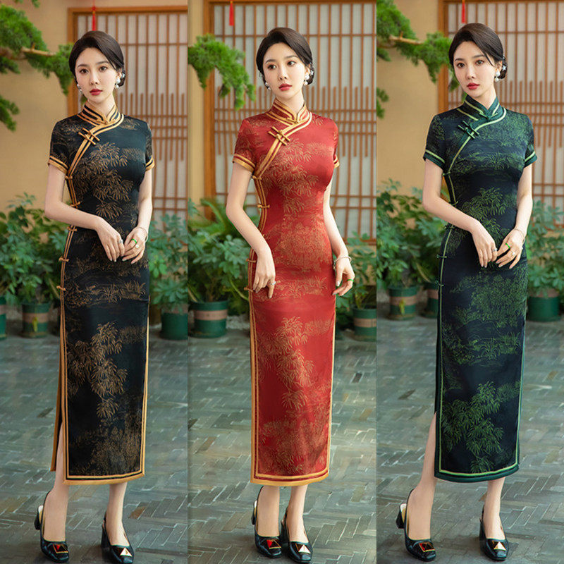 旗袍24春夏新款 老上海复古国风长款 短袖 传统民族风日常宴会旗袍