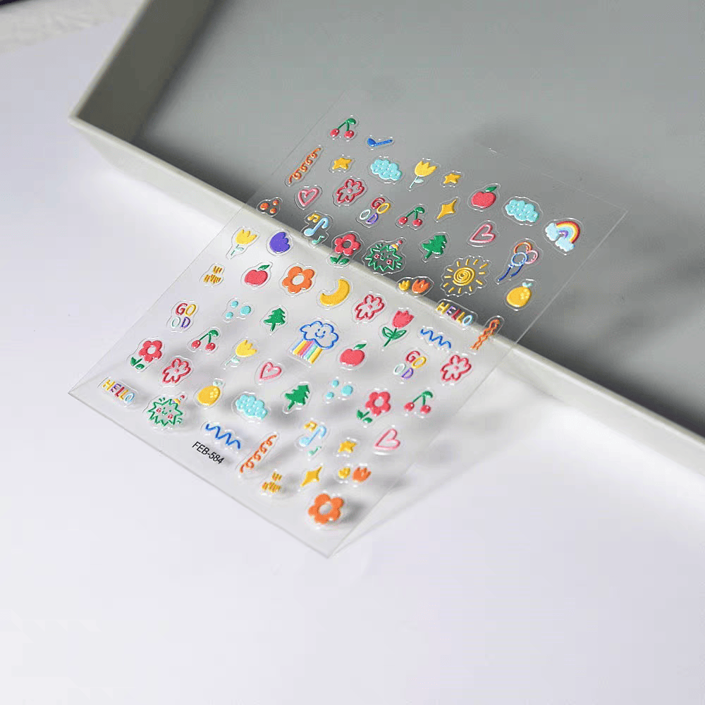 可爱美甲贴纸小红书新款 多巴胺同款 童趣浮雕立体卡通指甲花花云朵