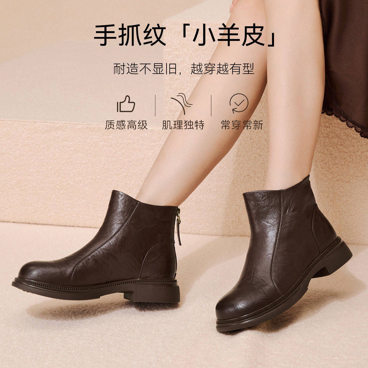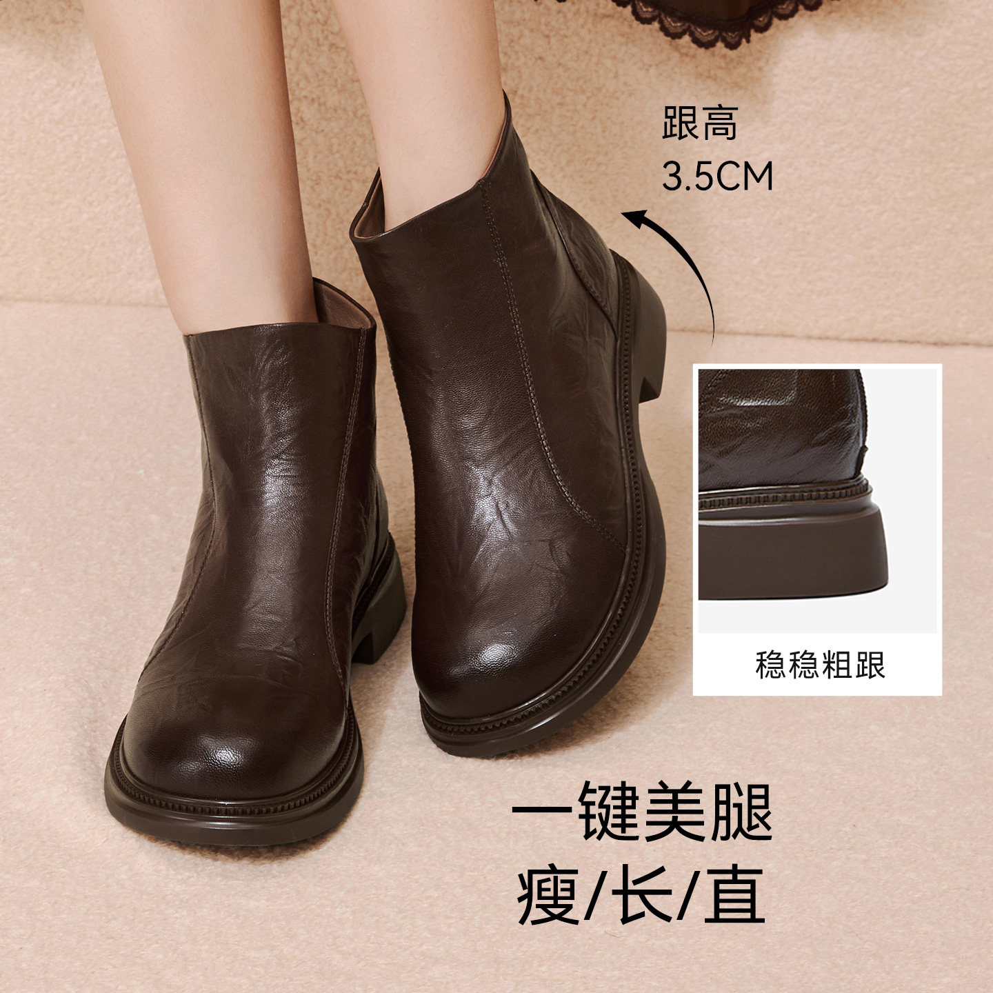 商场同款 百思图2025冬季 新款 休闲靴简约通勤粗跟女短靴S3055DD5