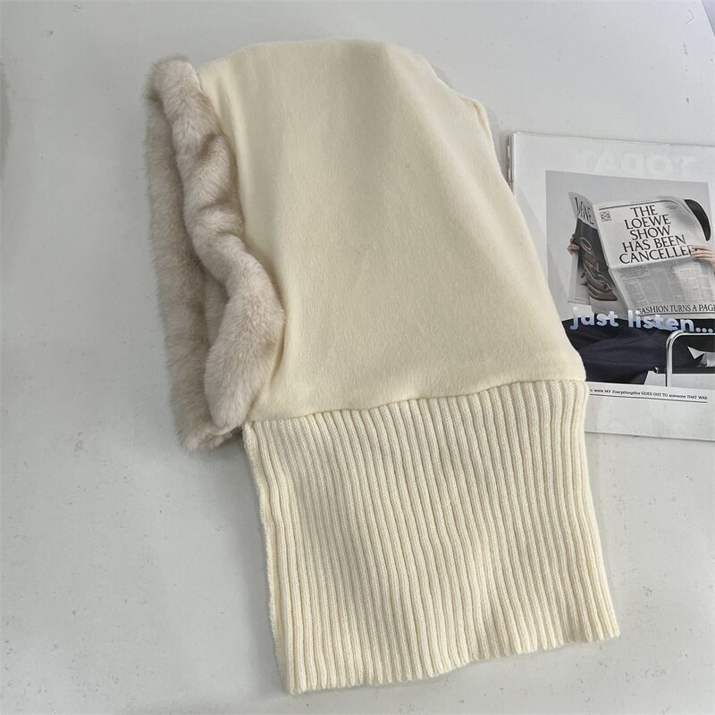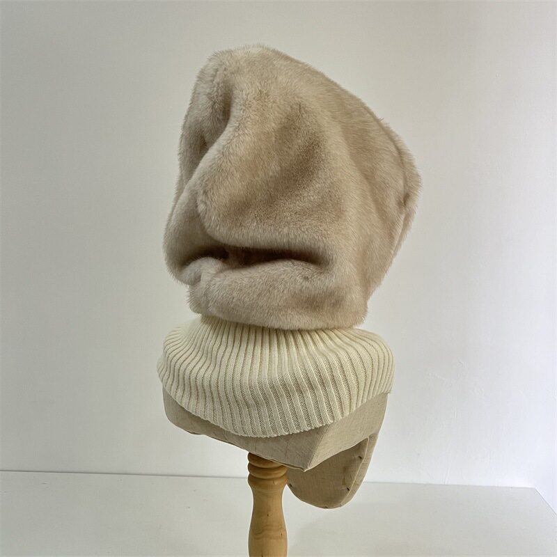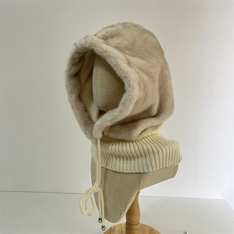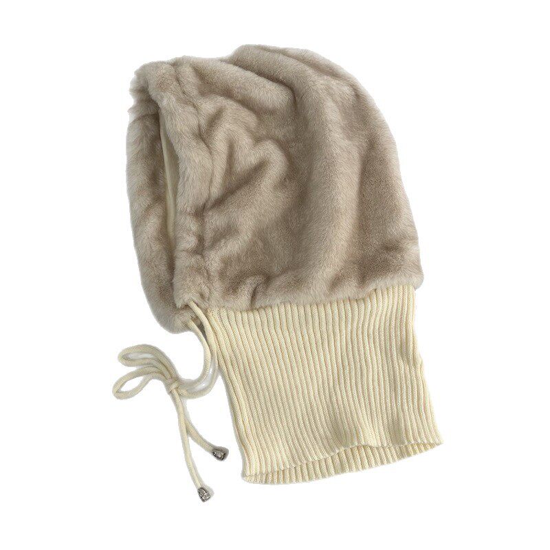 欧美风仿兔毛拼接毛线巴拉克拉法帽女冬季 户外加绒保暖护耳套