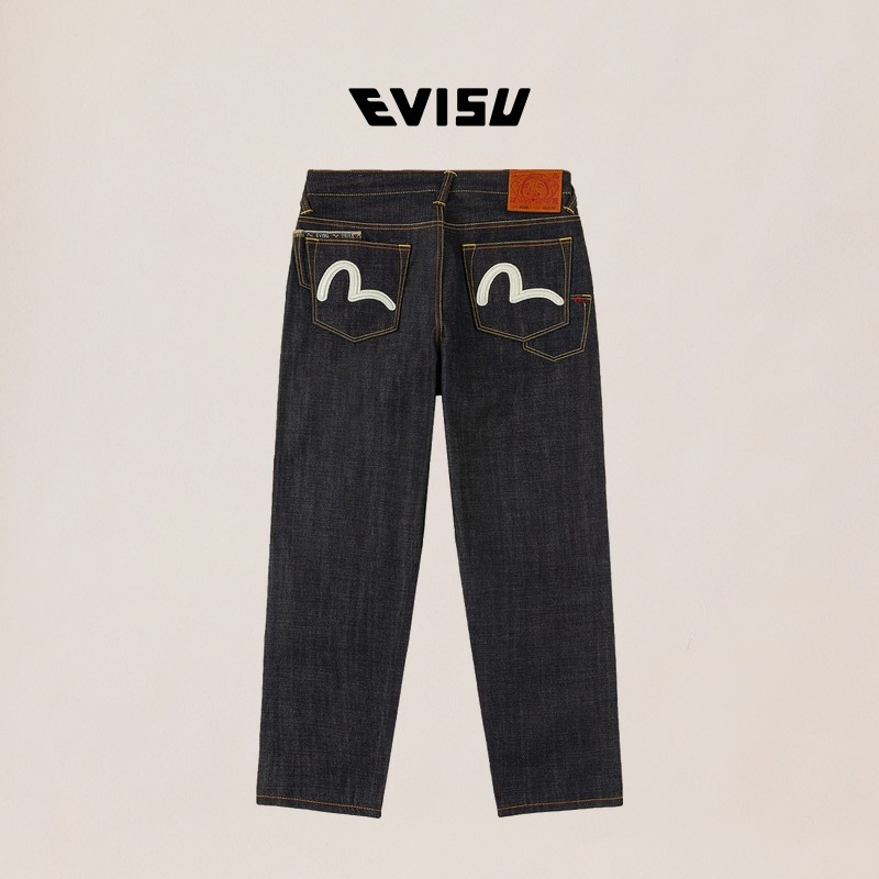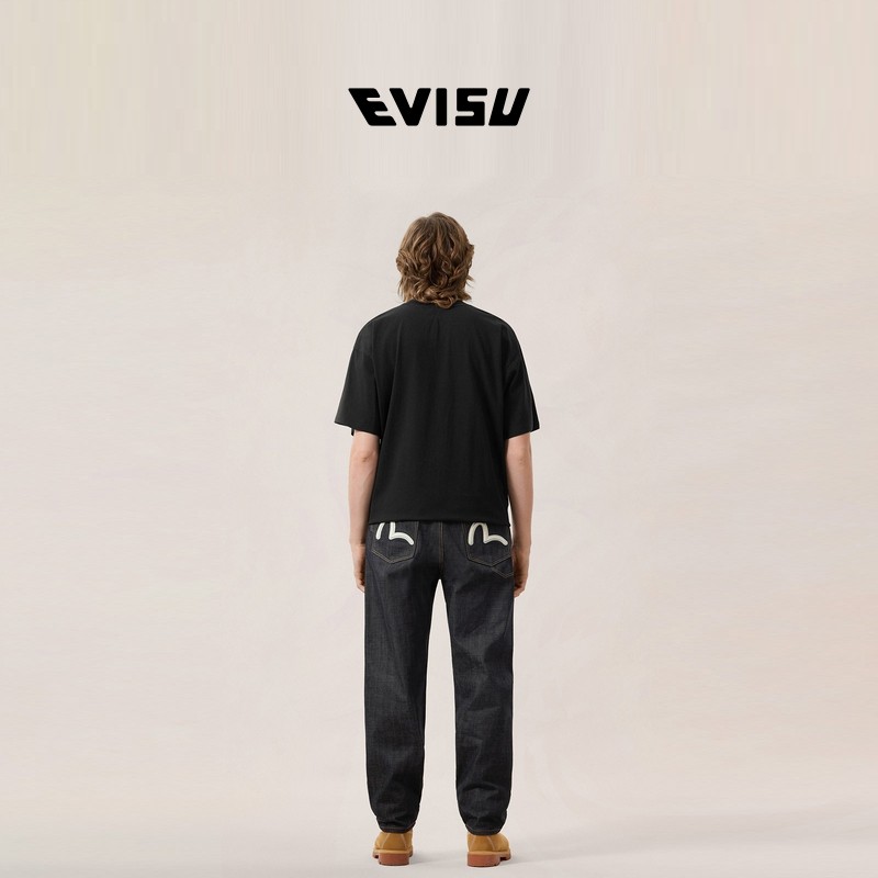 EVISU福神2026春新款 男海鸥刺绣休闲直筒牛仔裤 2ESHTM6JE103630DN
