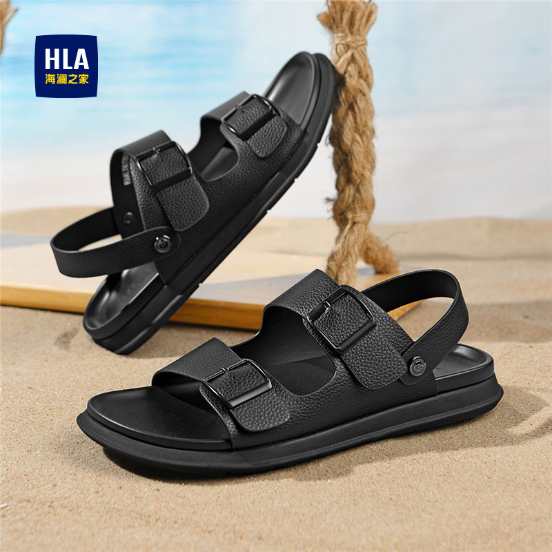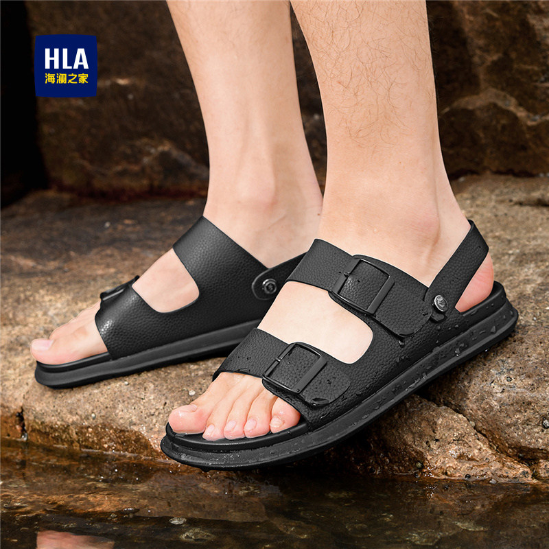海澜之家男鞋 拖鞋 新款 HLA 夏季 休闲透气软底户外皮凉鞋 两穿沙滩鞋