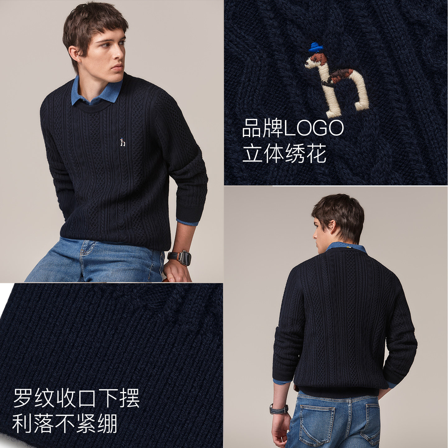 绞花羊毛衫 Hazzys哈吉斯男士 针织衫 秋季 休闲圆领保暖毛衣上衣