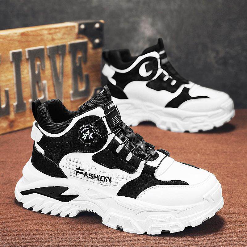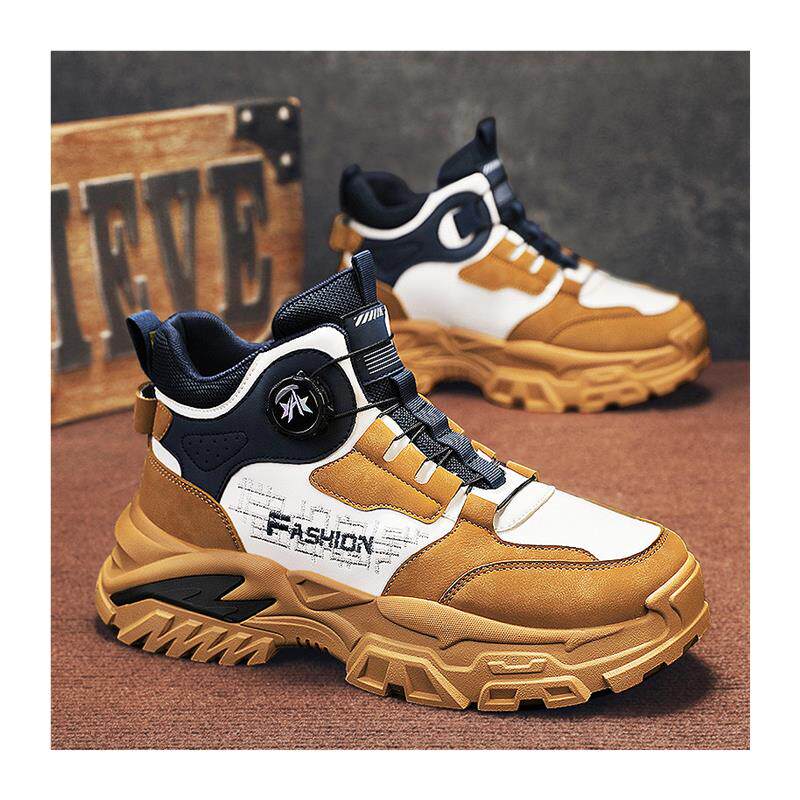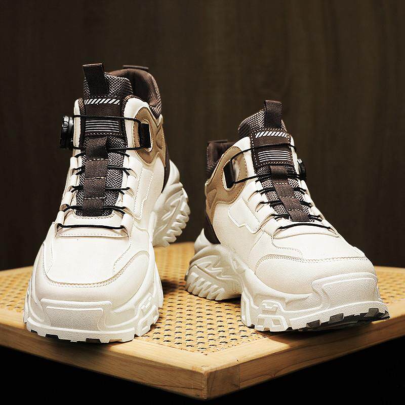 高货高帮男鞋 秋冬季 运动旋转纽扣厚底板鞋 正品 加绒棉鞋 工