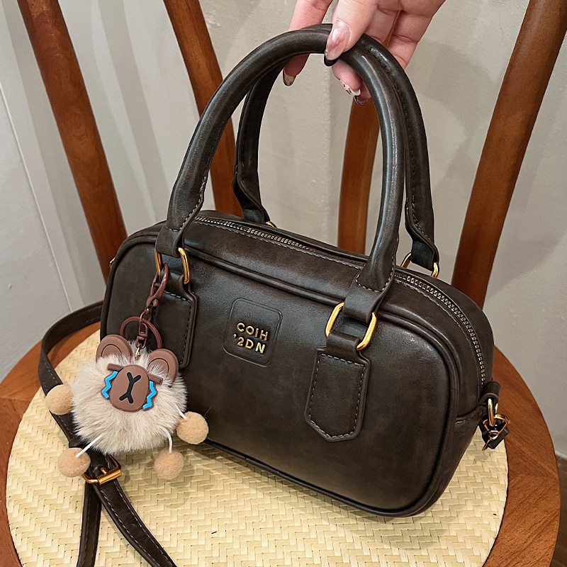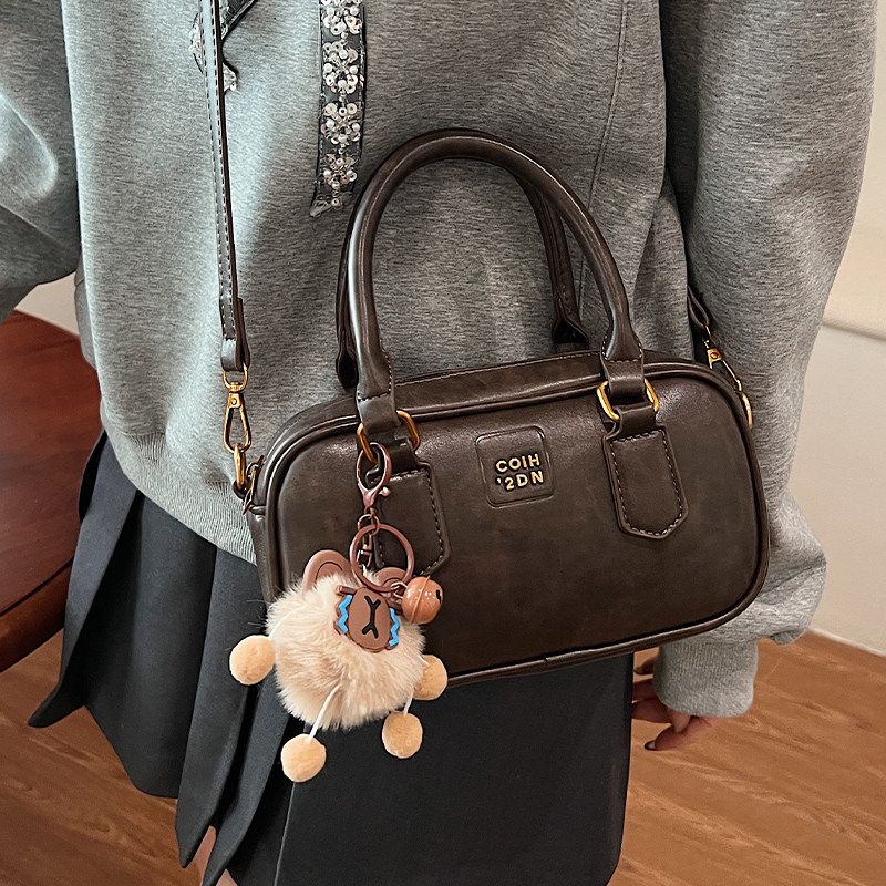 复古手拎保龄球包女2025秋冬新款 时尚 百搭单肩包法国小众设计女包