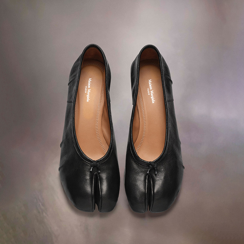 单鞋 Maison Margiela马吉拉Tabi分趾做旧褶皱芭蕾鞋 3cm