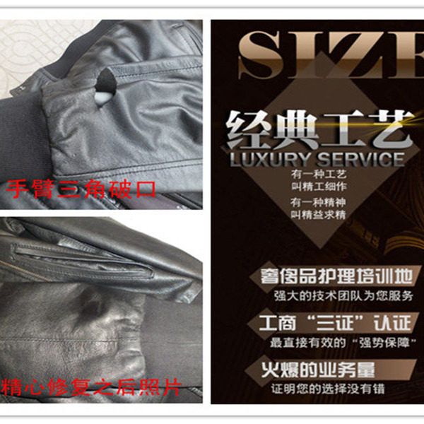 店铺掌柜:皮衣修补破口划破修复 皮草补洞真皮皮衣换皮 皮衣翻新 修补皮衣