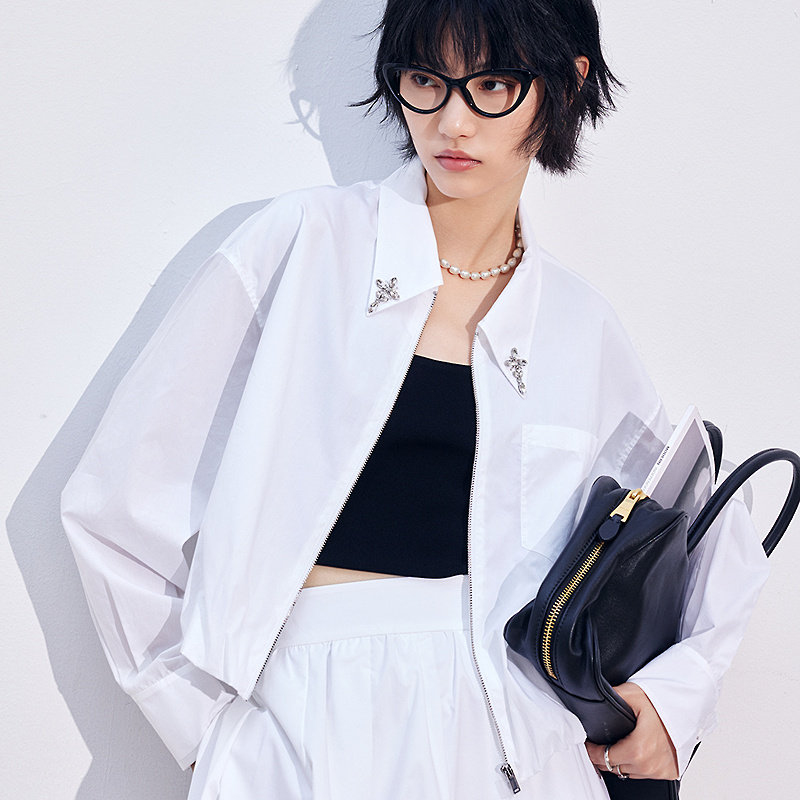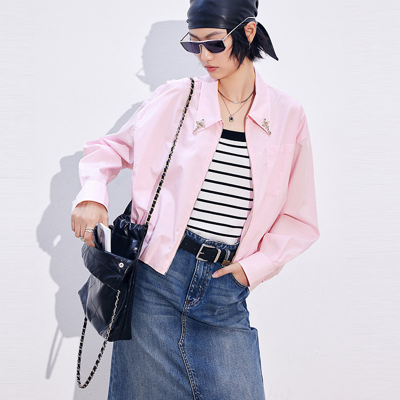 新款 FF仿佛衬衫 2025年秋季 100棉三角梅钉珠绣女显瘦通勤截短上衣