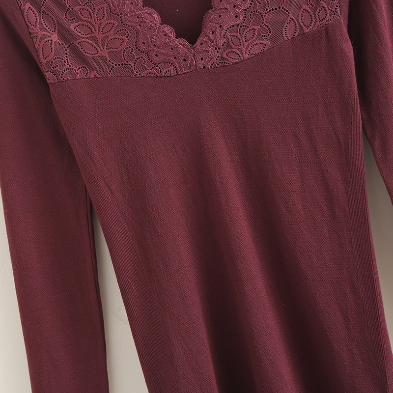 秋冬季 保暖内衣女V领蕾丝性感单件上衣紧身秋衣女打底衫