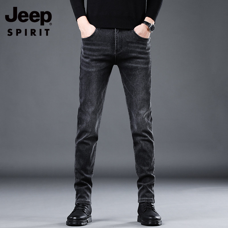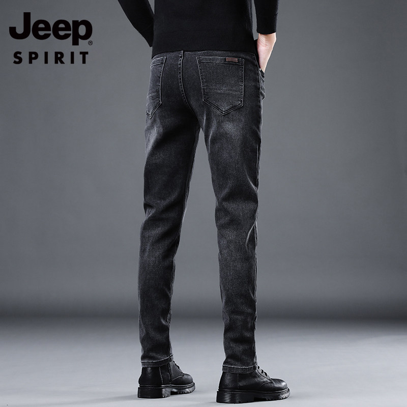 男士 小脚长裤 秋冬季 吉普牛仔裤 新款 弹力修身 潮牌高端休闲加绒裤 子